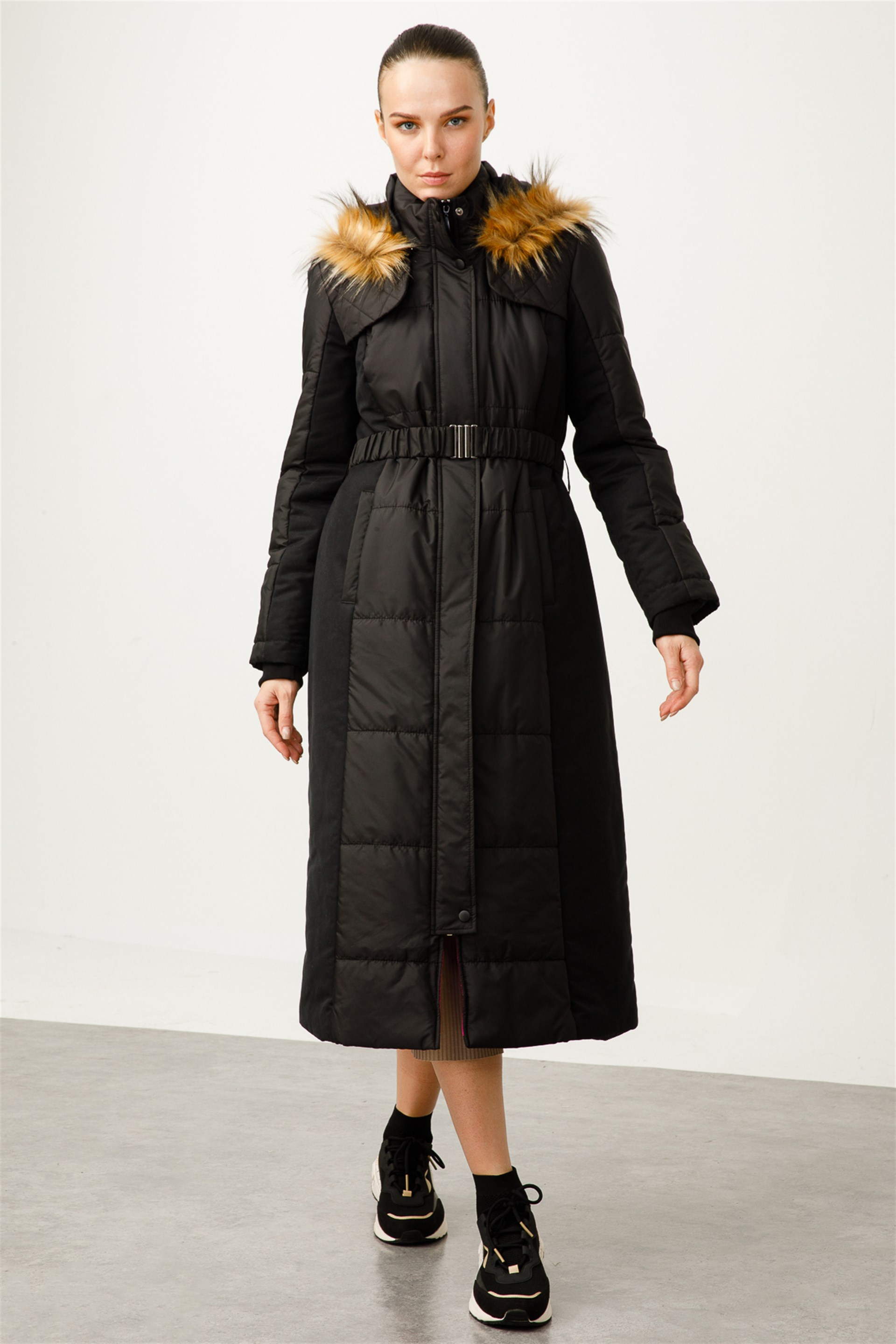Aller Kapitone ve Helene Garnili Kapitone Manto-Siyah (222809M KABAN-01)