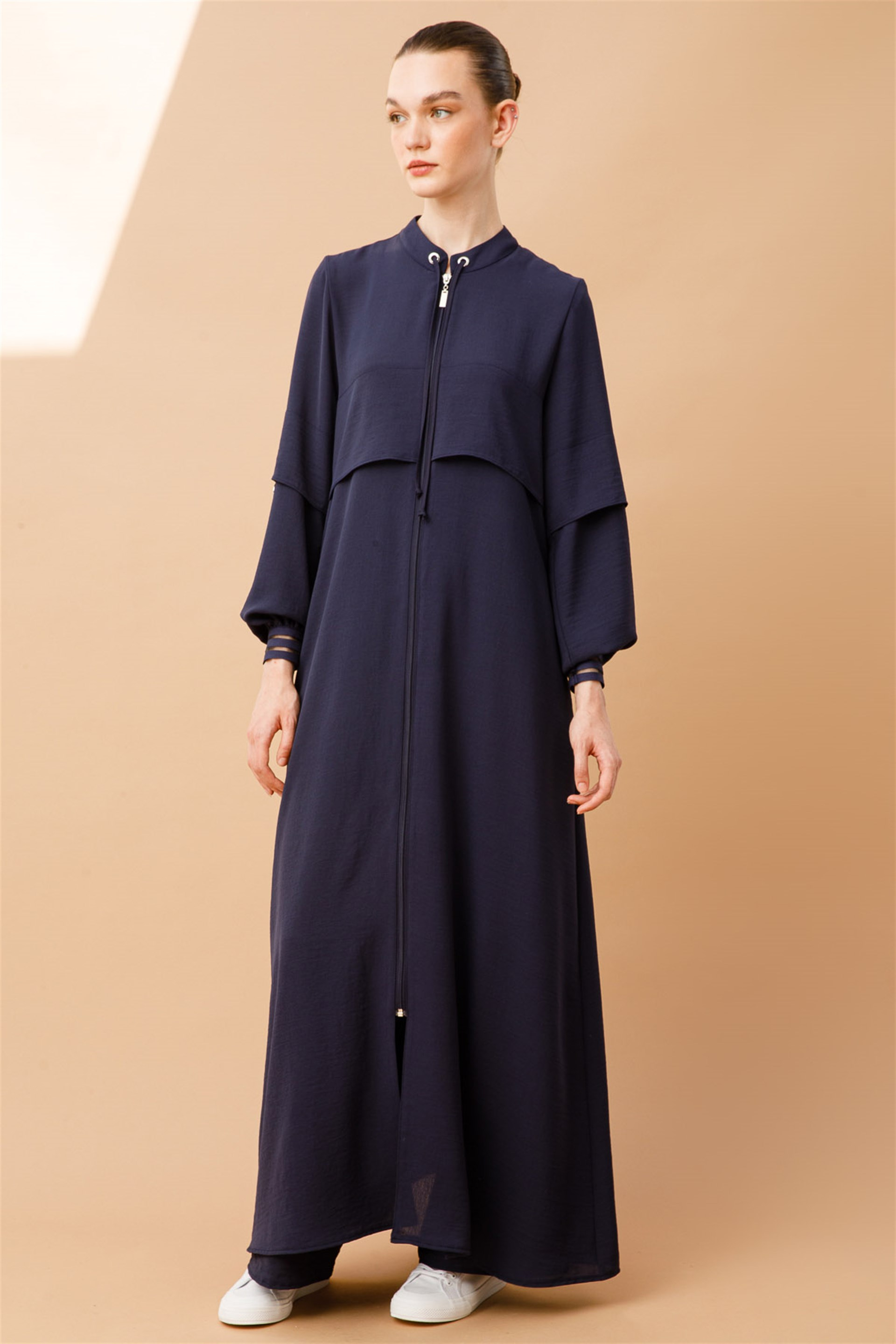 Aller Parçalı Kolları Ribanalı Hafif ve Zor Kırışan Kumaştan Tam Boy Spor Kap-Laci