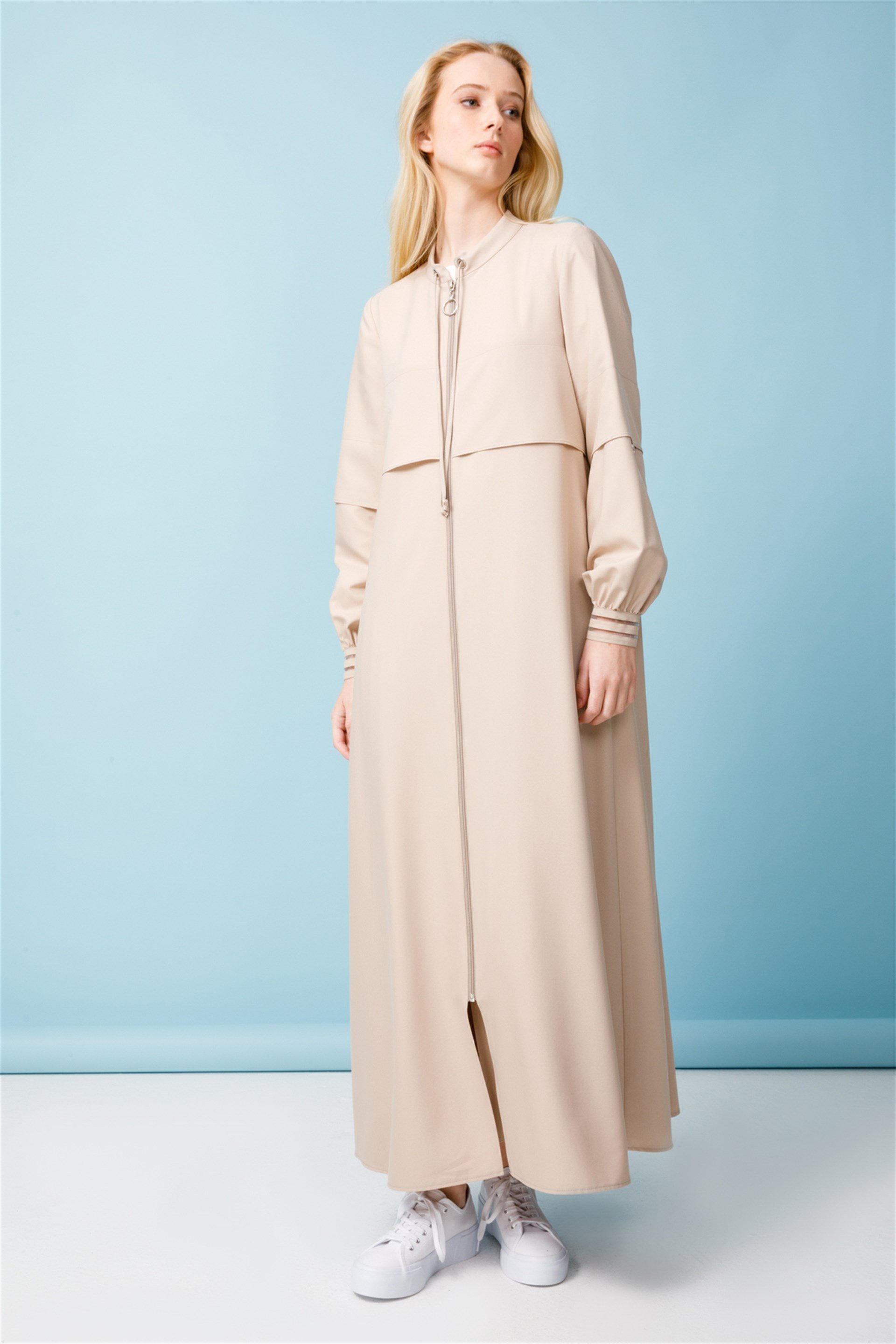 Aller Parçalı Kolları Ribanalı Hafif ve Zor Kırışan Kumaştan Tam Boy Spor Kap-Taş (221539M PARDESÜ-12)
