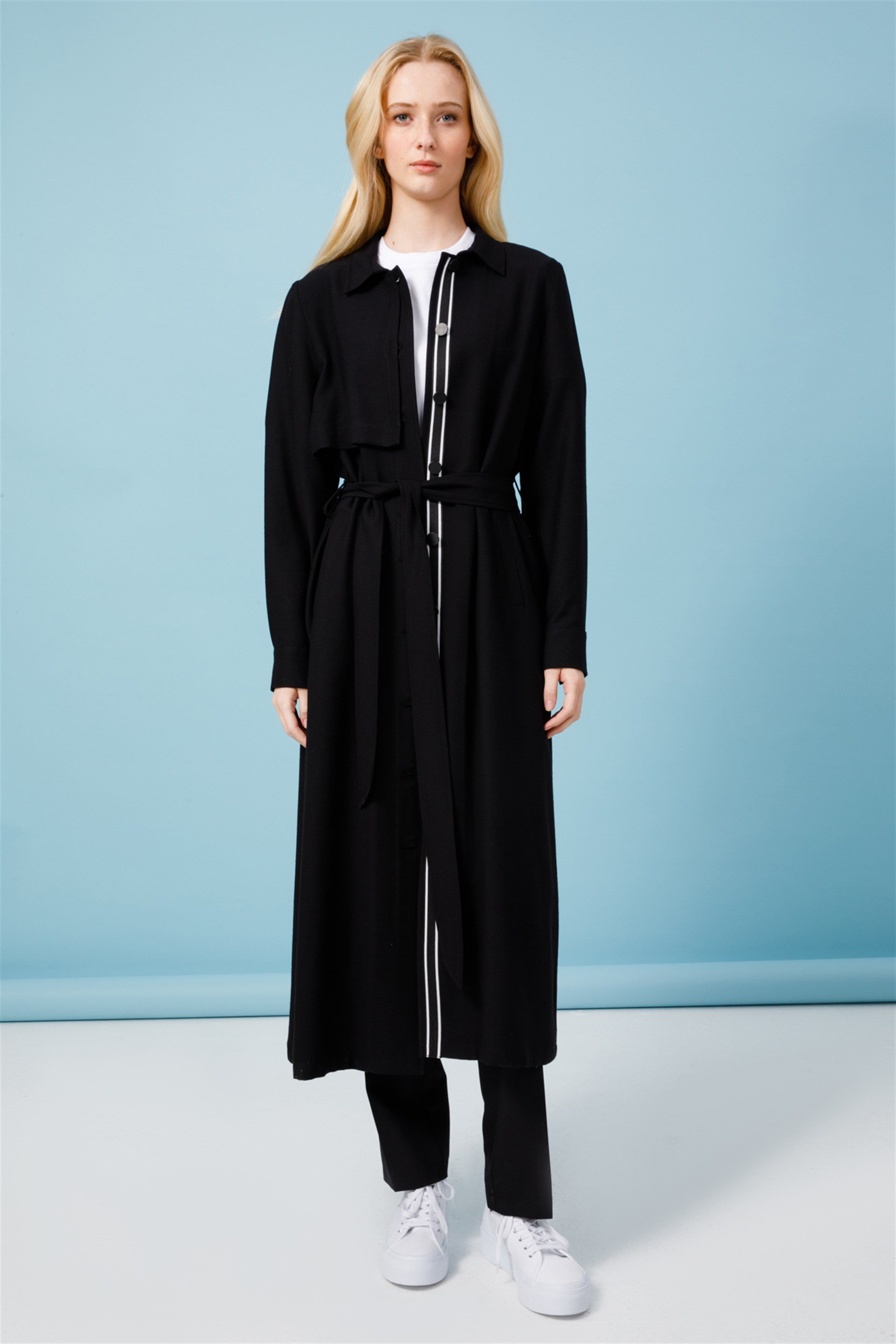 Aller Rüzgarlıklı Doğal Viskon İçerikli Spor Çizgi Detaylı Tam Boy Spor Kap-Siyah (221513M PARDESÜ-01)