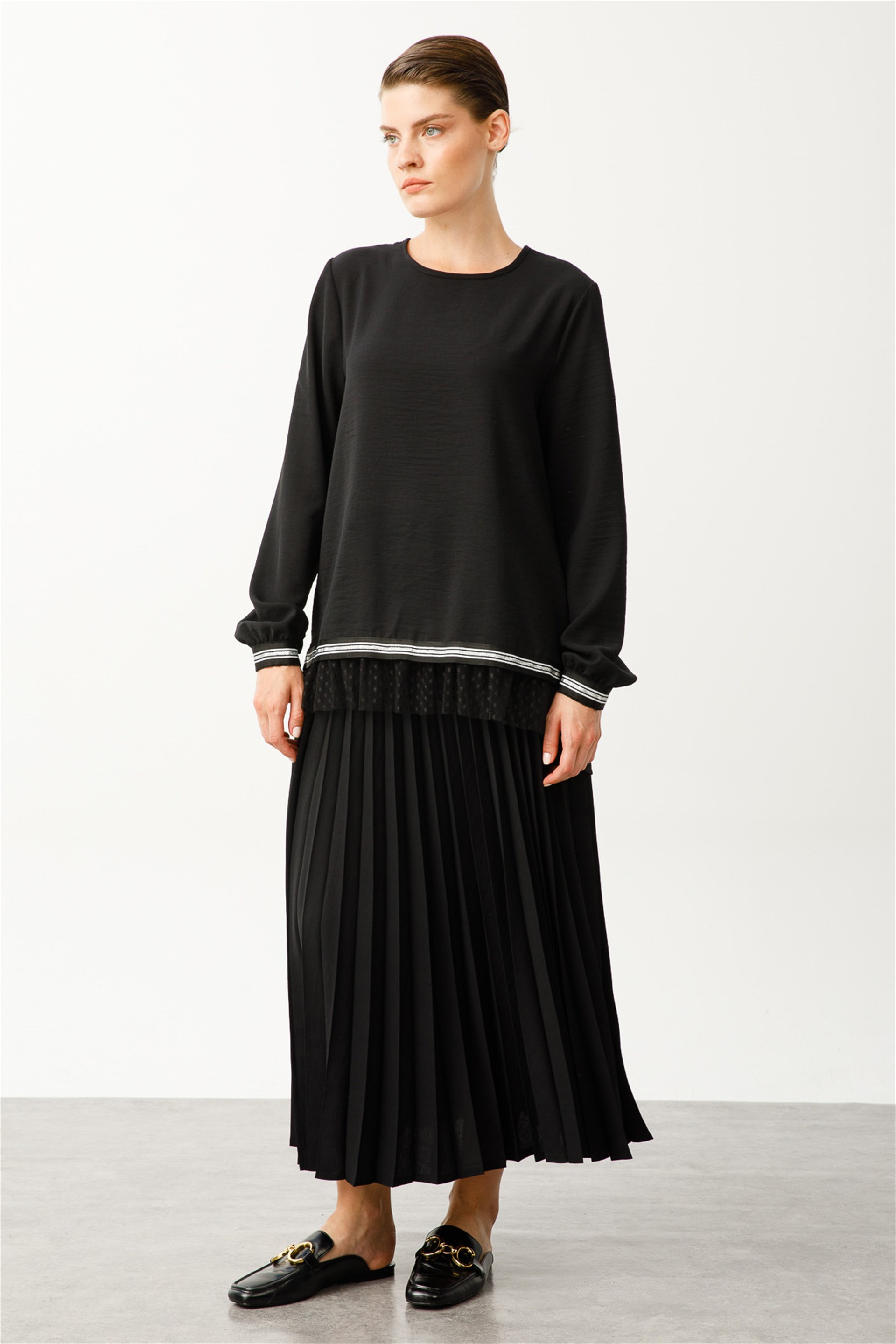 Ara Boy Zıt Renk Uyumlu Spor Tunik-Siyah (221807M BLUZ TUNİK-01)
