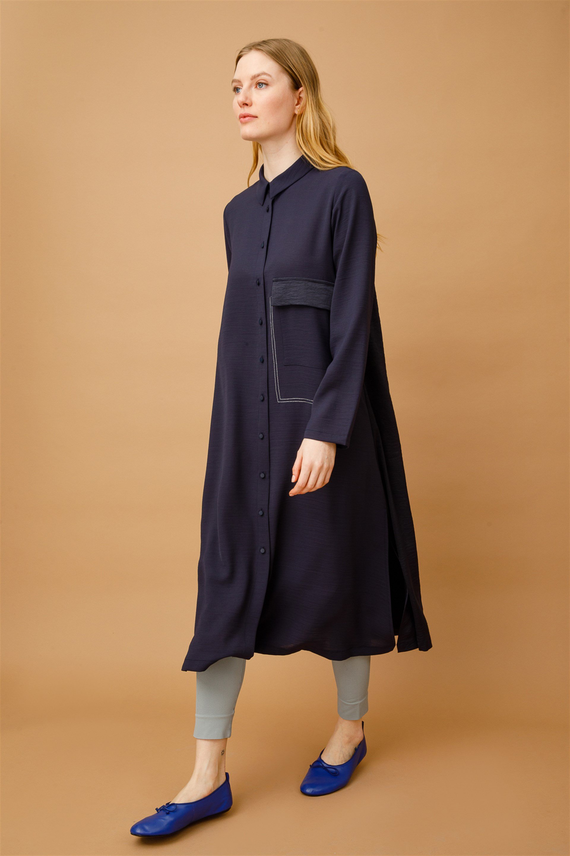 Arkası ve Cep Kapağı Saten Garni Detaylı Nefes Alan Zor Kırışan Spor Kap Tunik-Laci