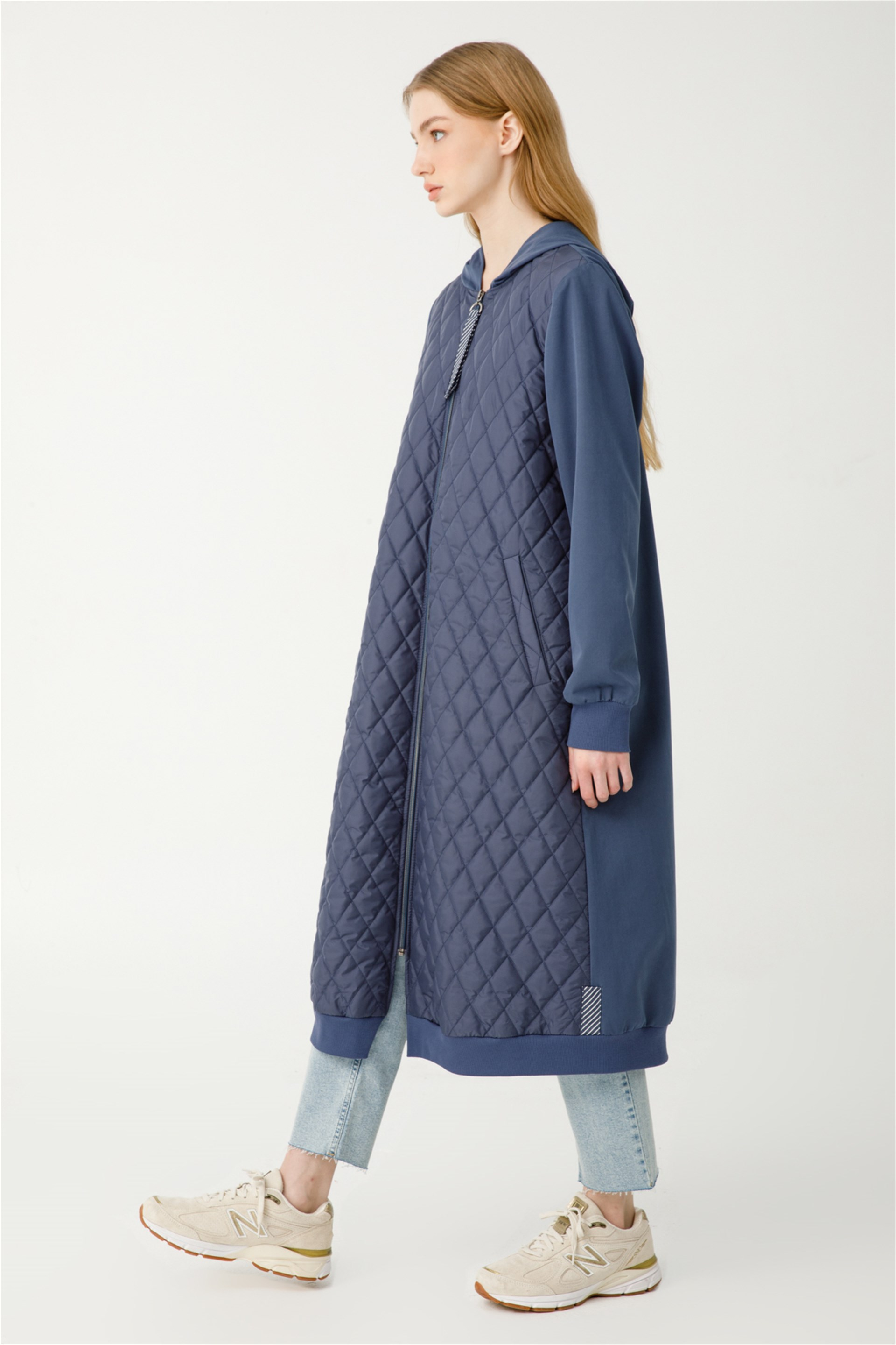 Arkası ve Kolları Dokuma Kumaş Önü Kapitone Garni Detaylı Spor Kap-İndigo (221528M PARDESÜ-44)