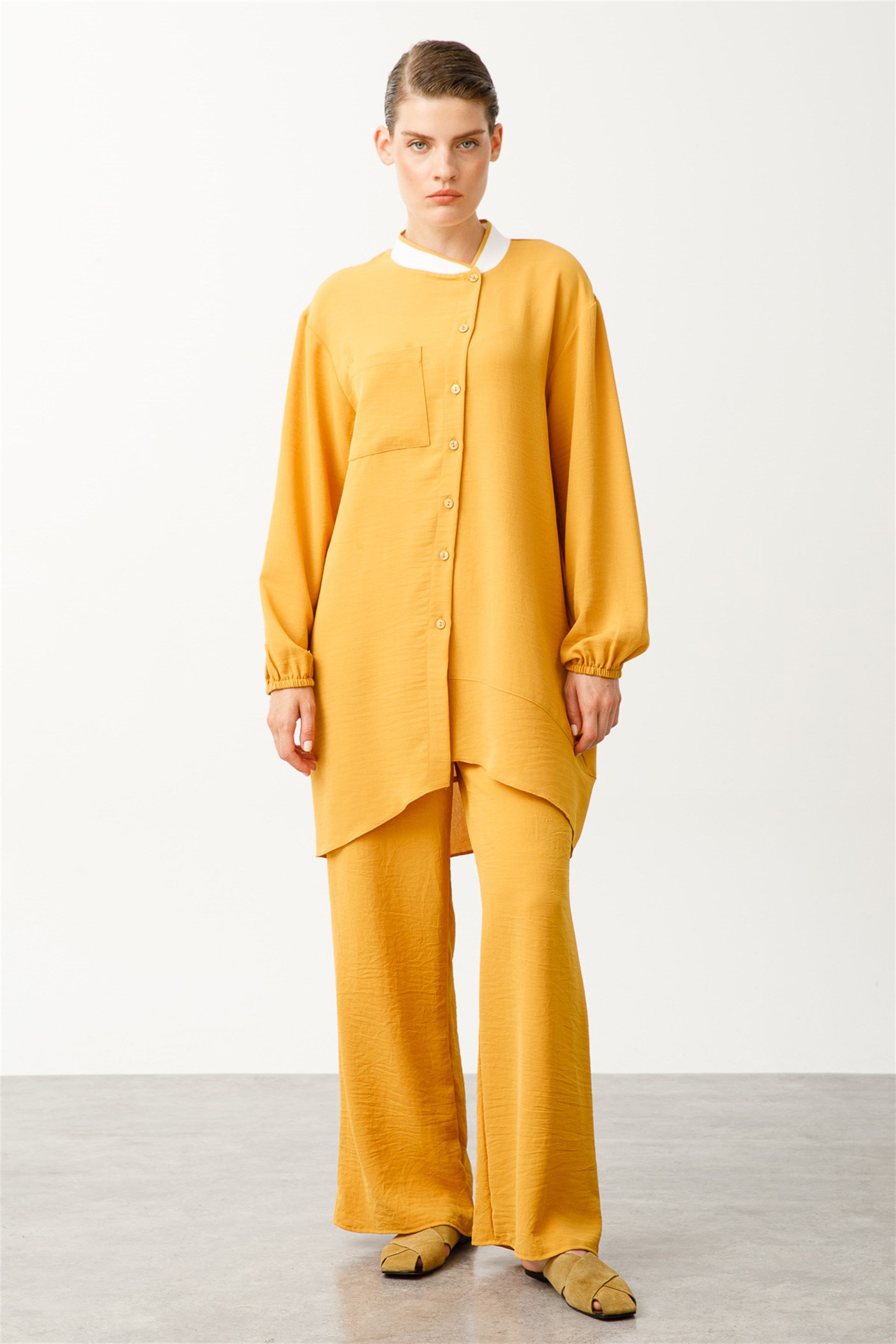 Asimetrik Kesim Modern Tunik Kap-Hardal
