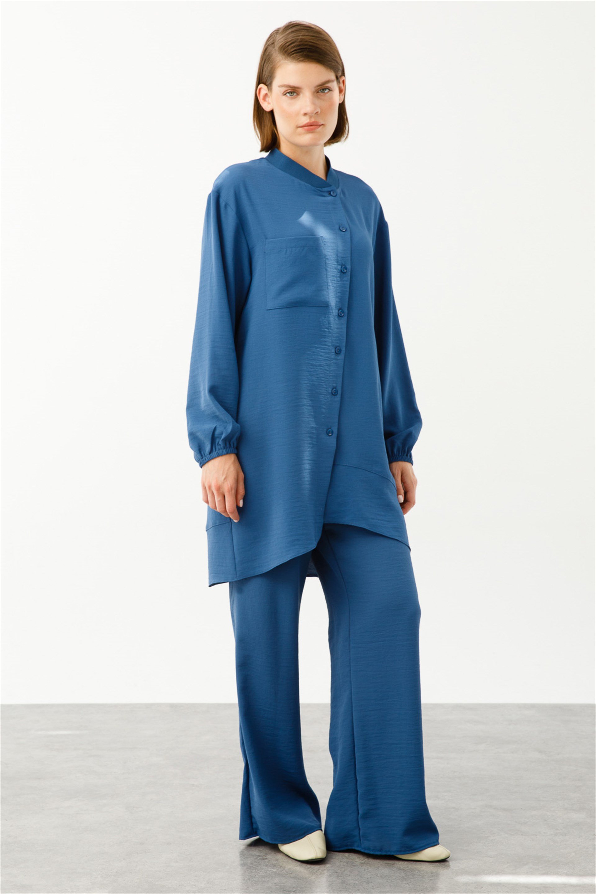 Asimetrik Kesim Modern Tunik Kap-İndigo (221407M TUNİK-44)