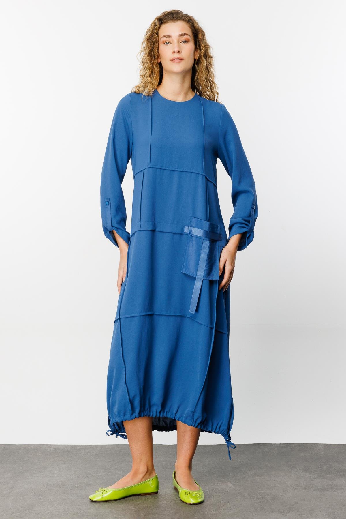 AS/TB Aller Cep ve Tafta Garni Tasarım Özel Dokuma Kumaş Elbise-İndigo (241305M ELBİSE-44)