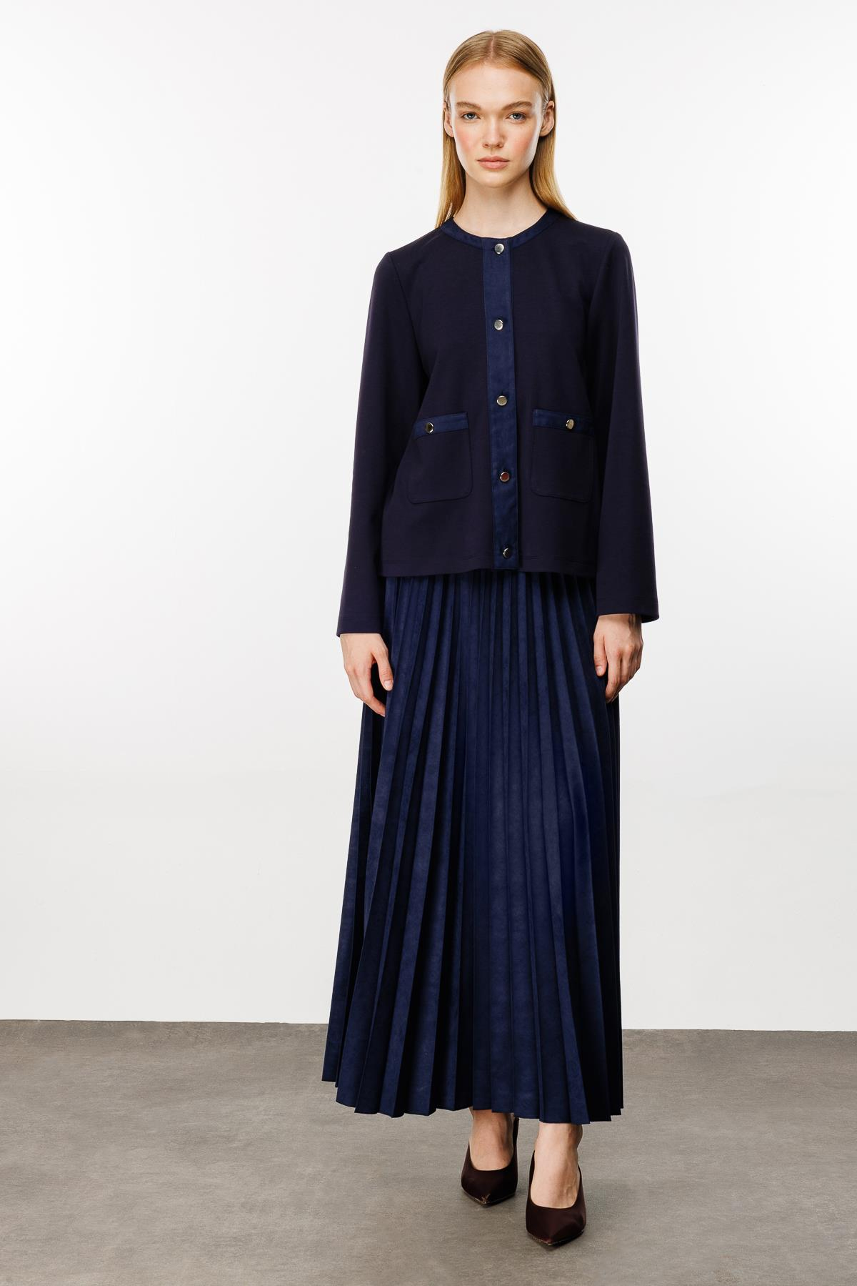 Babel Süet Doku Garnili Ceket ve Süet Doku Etekli Kombin Takım