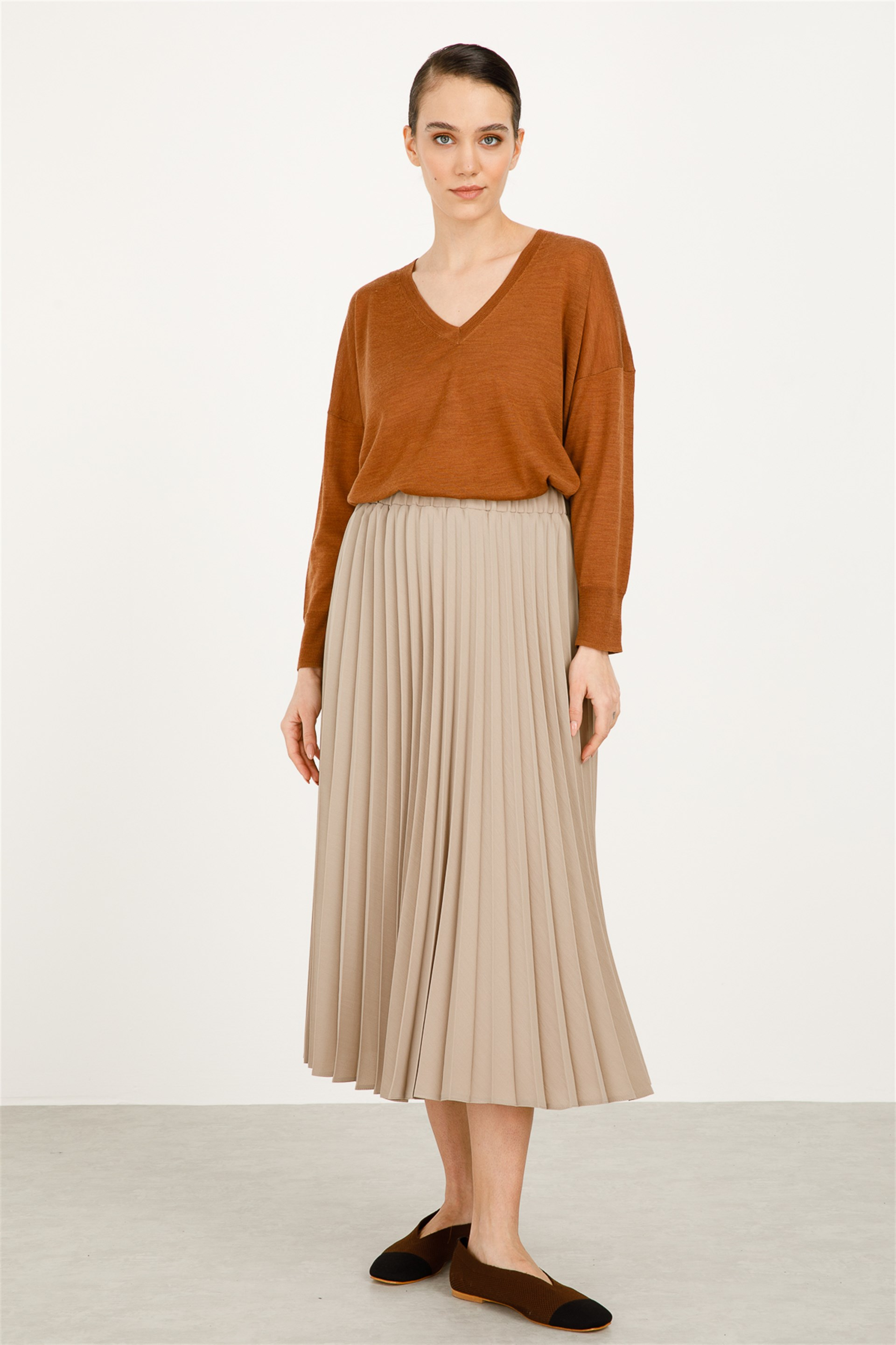 Basic Piliseli, Astarsız, Bel Kısmı Lastikli Etek-Taş (211206M ETEK-12)