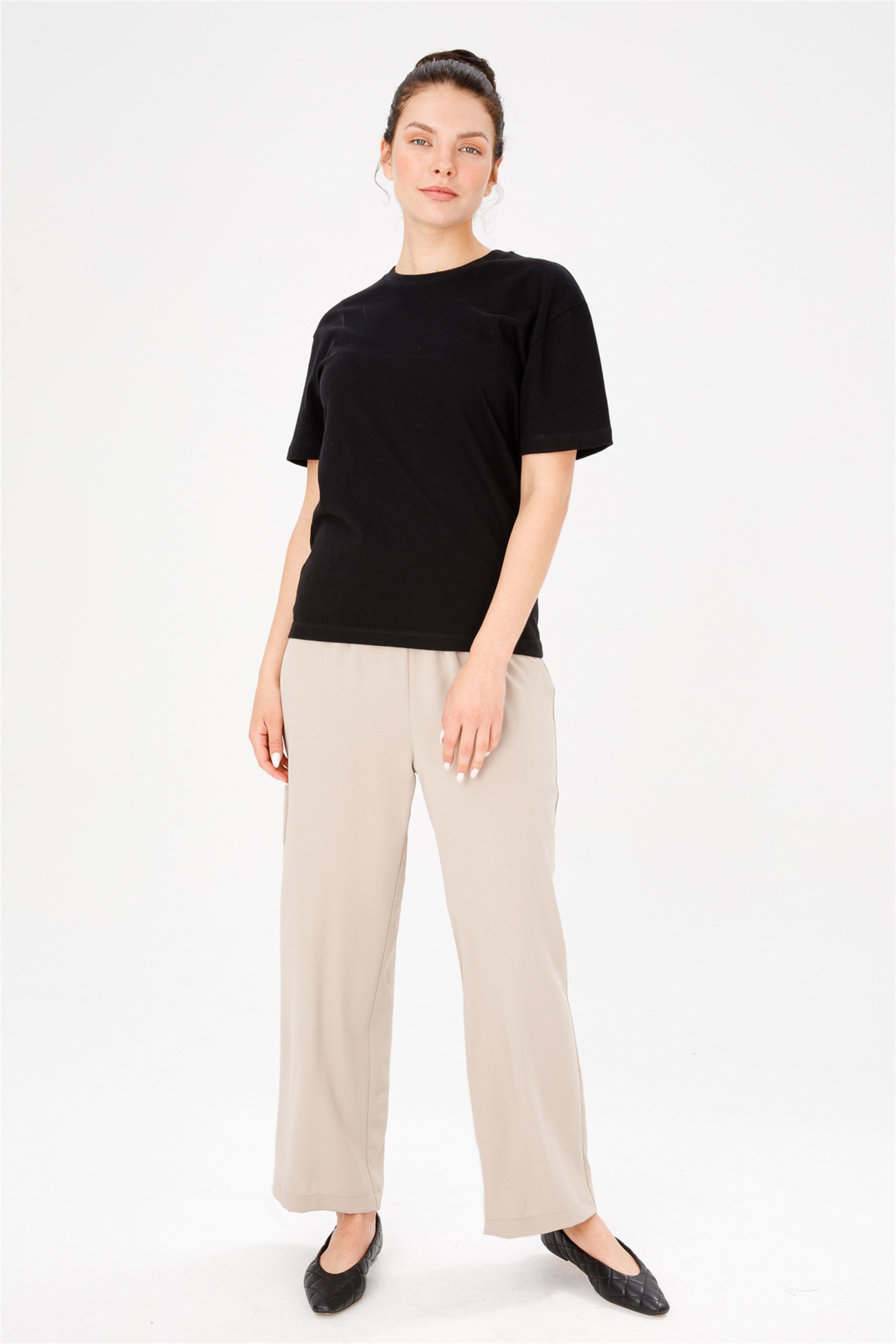 Beli Lastikli Bol Paça Pantolon-Taş (211908M PANTOLON-12)