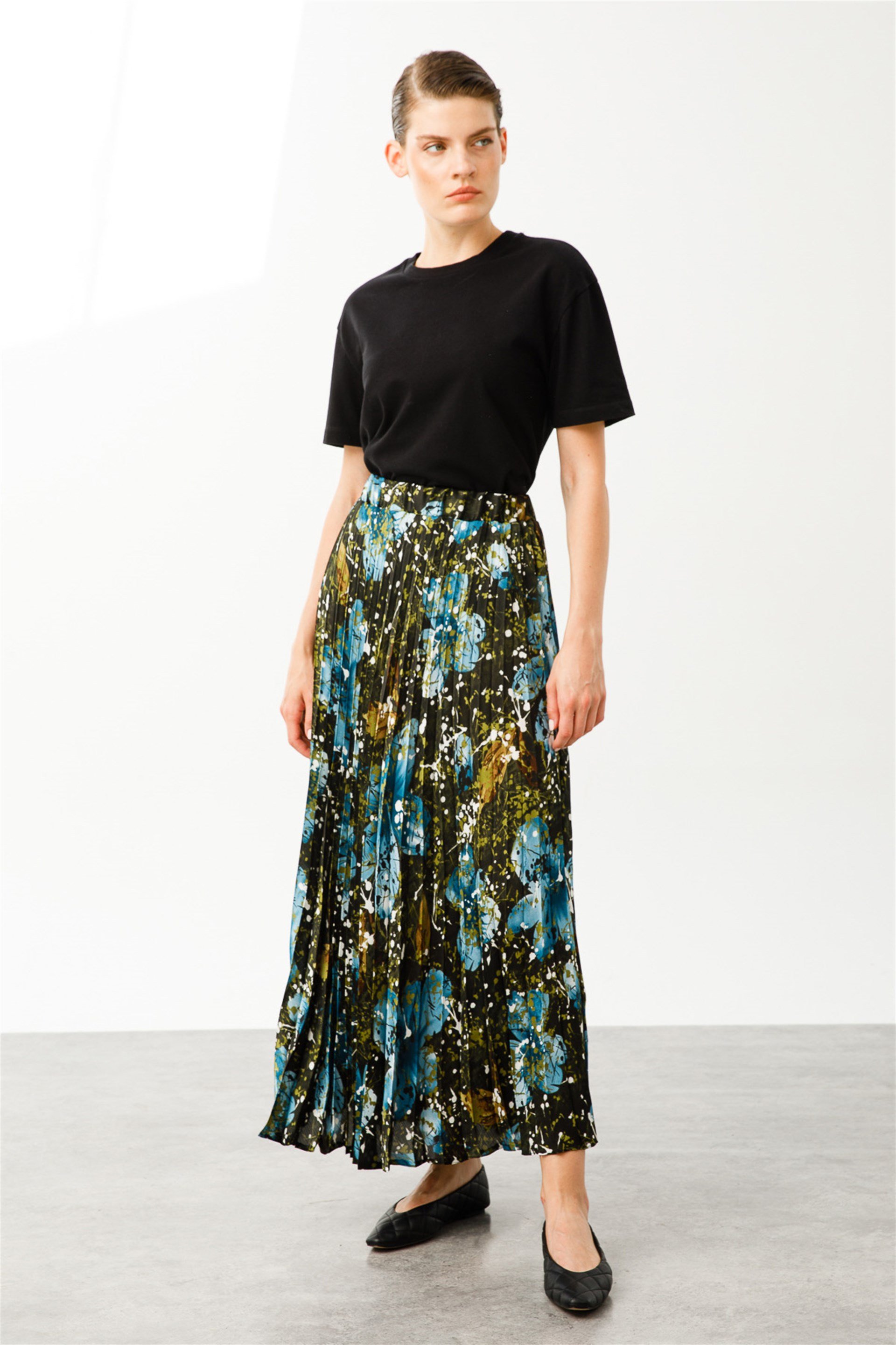 Beli Lastikli Piliseli Etek-Yeşil (221212M ETEK-06)