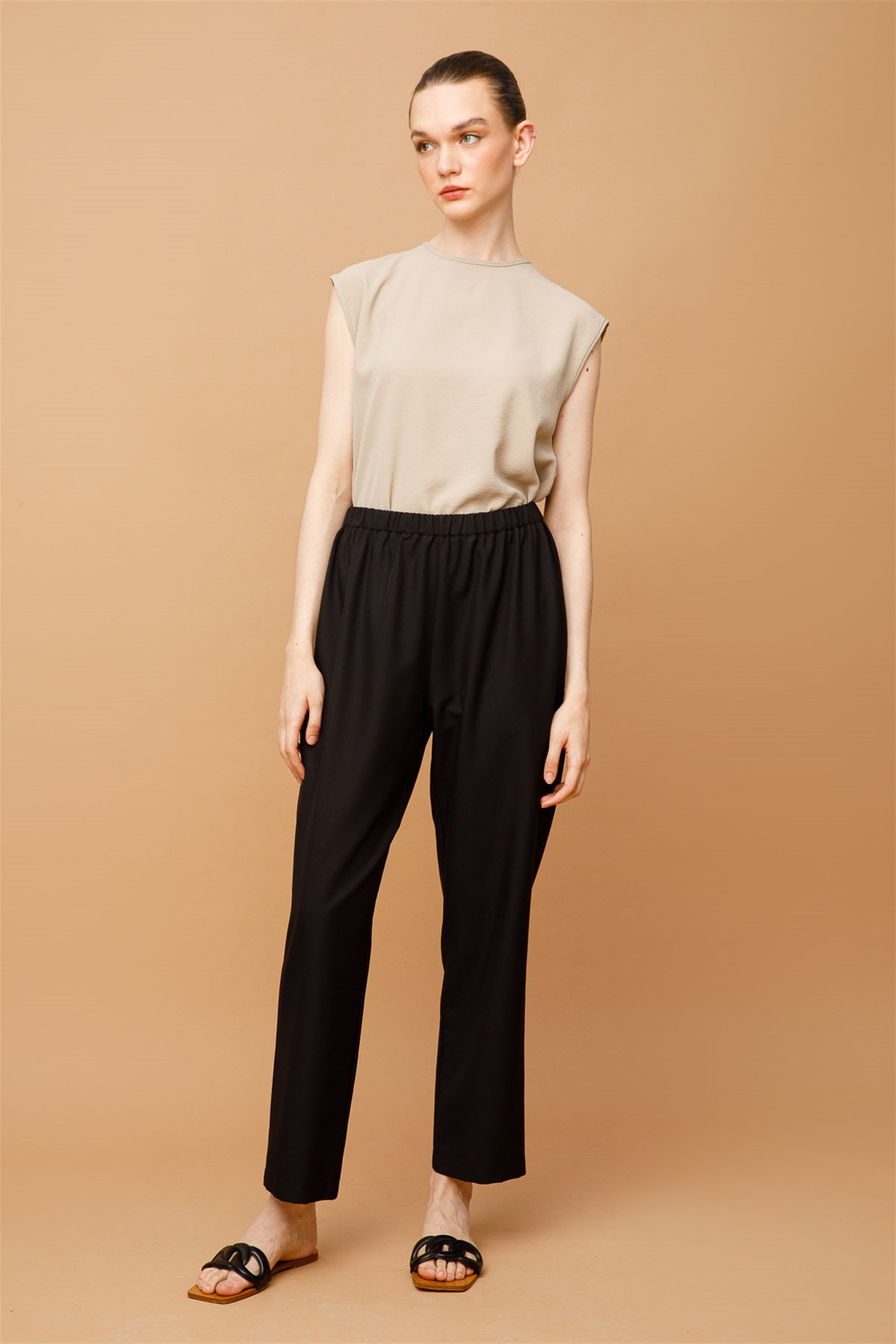 Beli Lastikli Zor Kırışan Havuç Pantolon-Siyah