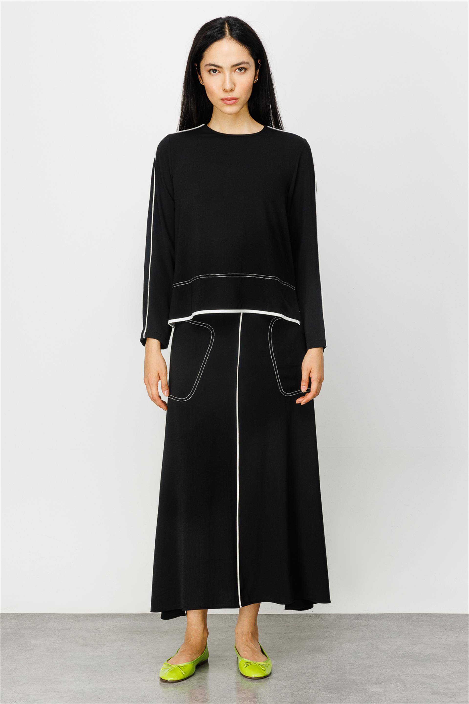 Beyaz Biyeli Etekli Takım-Siyah (231845M TAKIM-01)