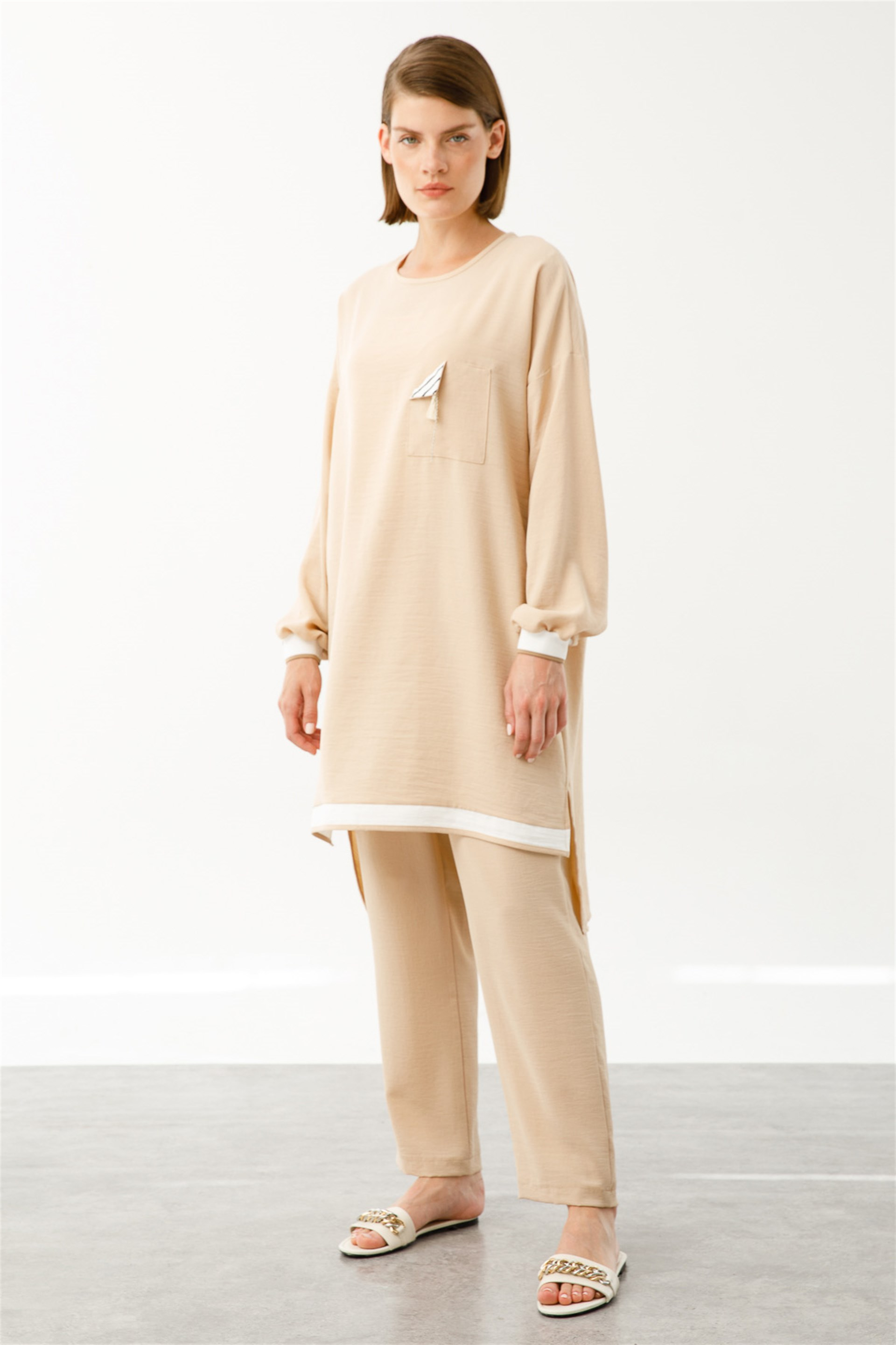 Beyaz Detaylarla Süslenmiş Farklı Cepli Tunik Kap-Taş (221414M TUNİK-12)
