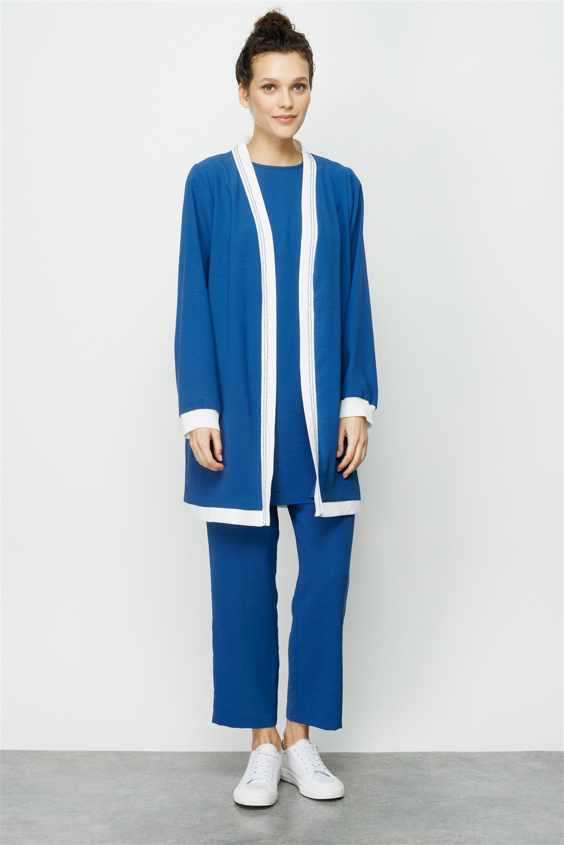 Beyaz Detaylı Kol Ucu Ribanalı İçili Dışlı Spor Takım-İndigo (231804M İÇLİ DIŞLI TAKIM-44)