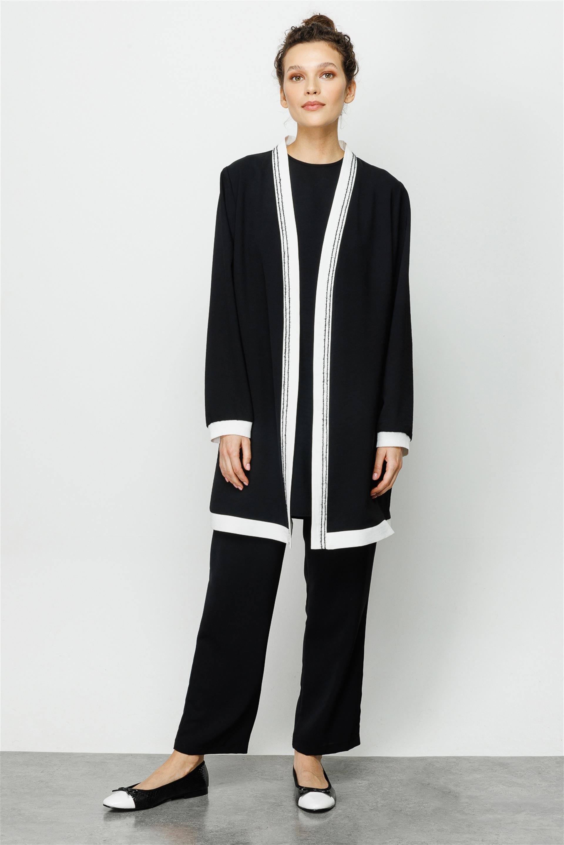 Beyaz Detaylı Kol Ucu Ribanalı İçili Dışlı Spor Takım-Siyah (231804M İÇLİ DIŞLI TAKIM-01)