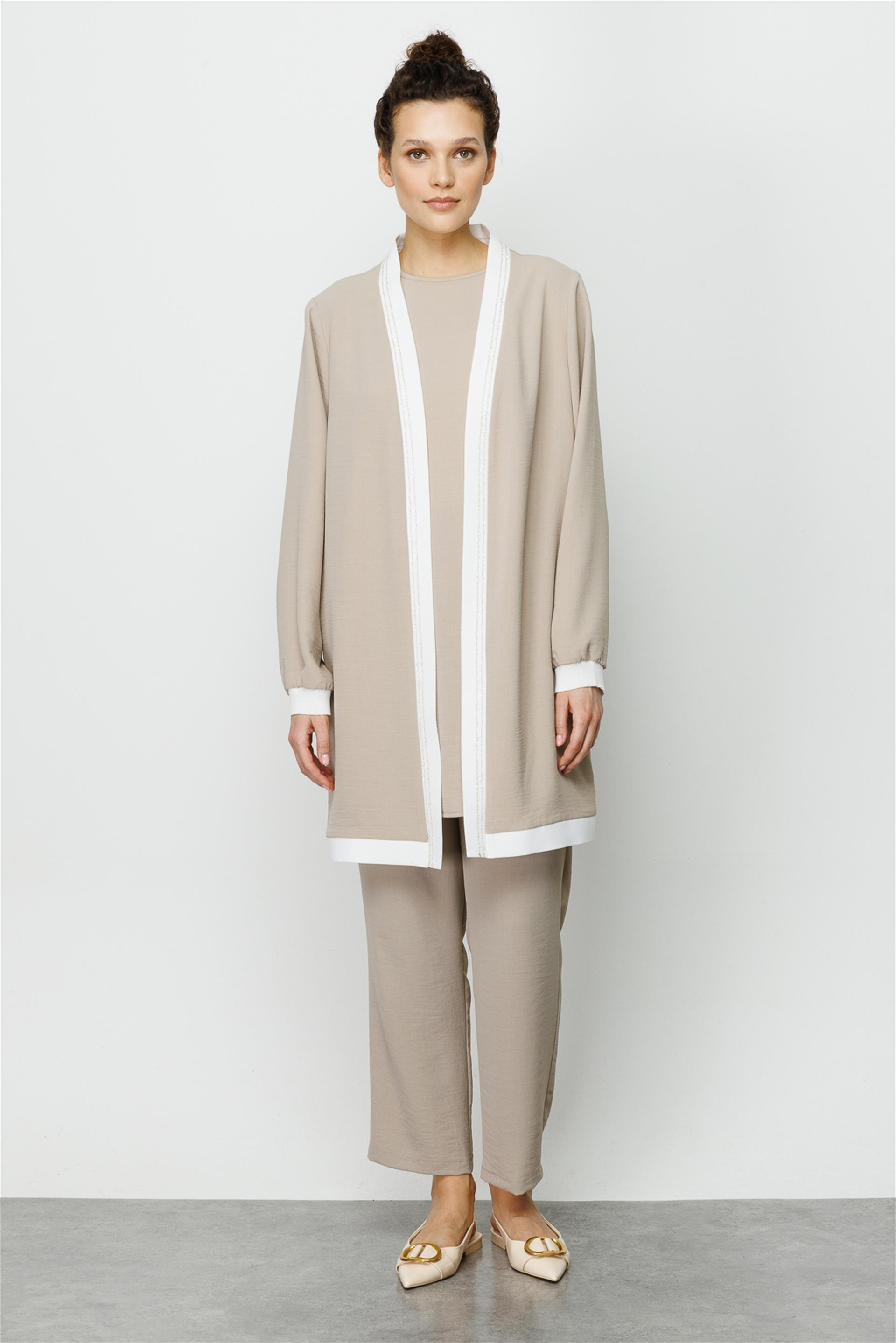 Beyaz Detaylı Kol Ucu Ribanalı İçili Dışlı Spor Takım-Taş