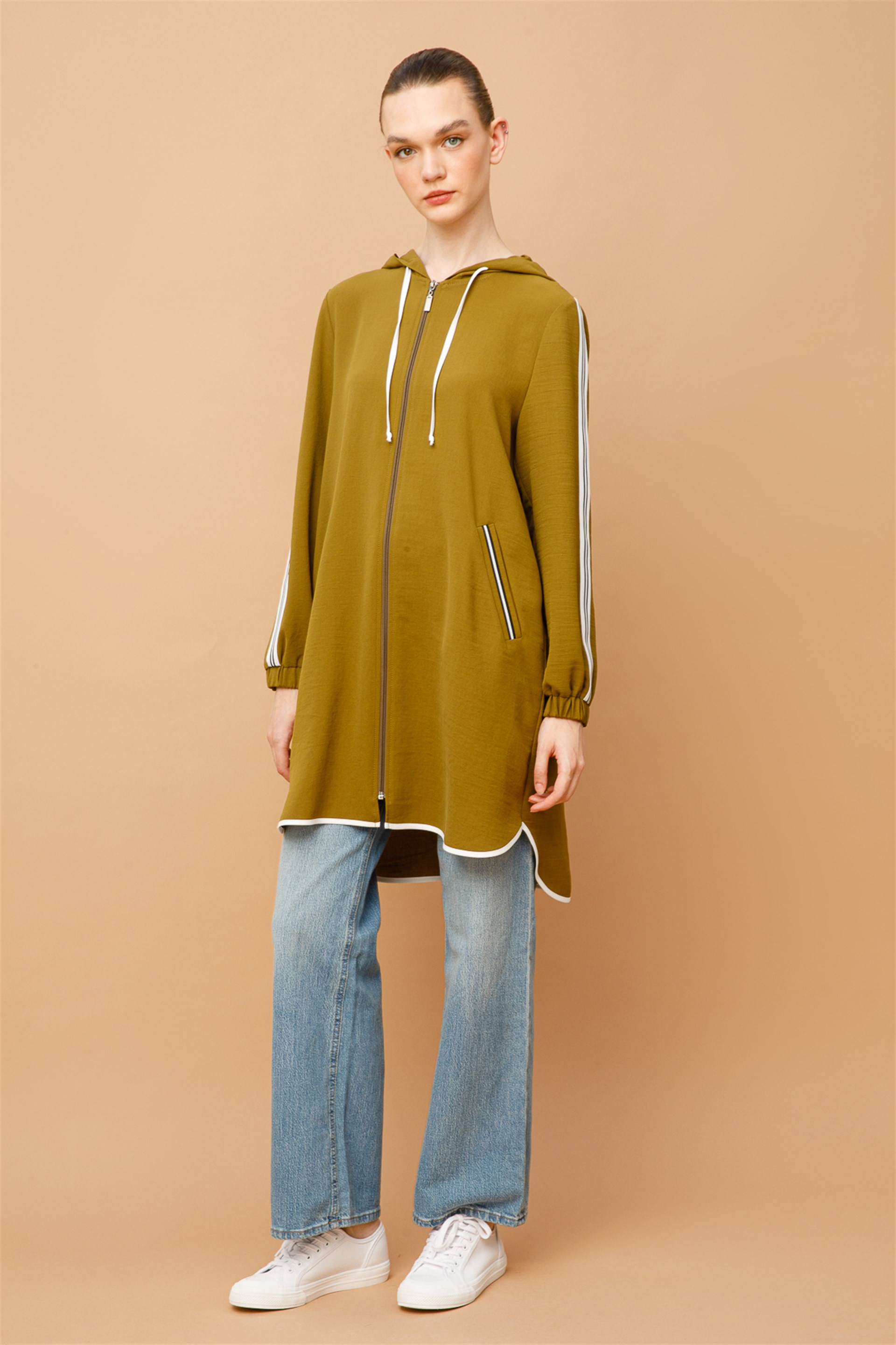 Beyaz Garnili Ara Boy Spor Kap Tunik-Haki (221449M TUNİK-20)