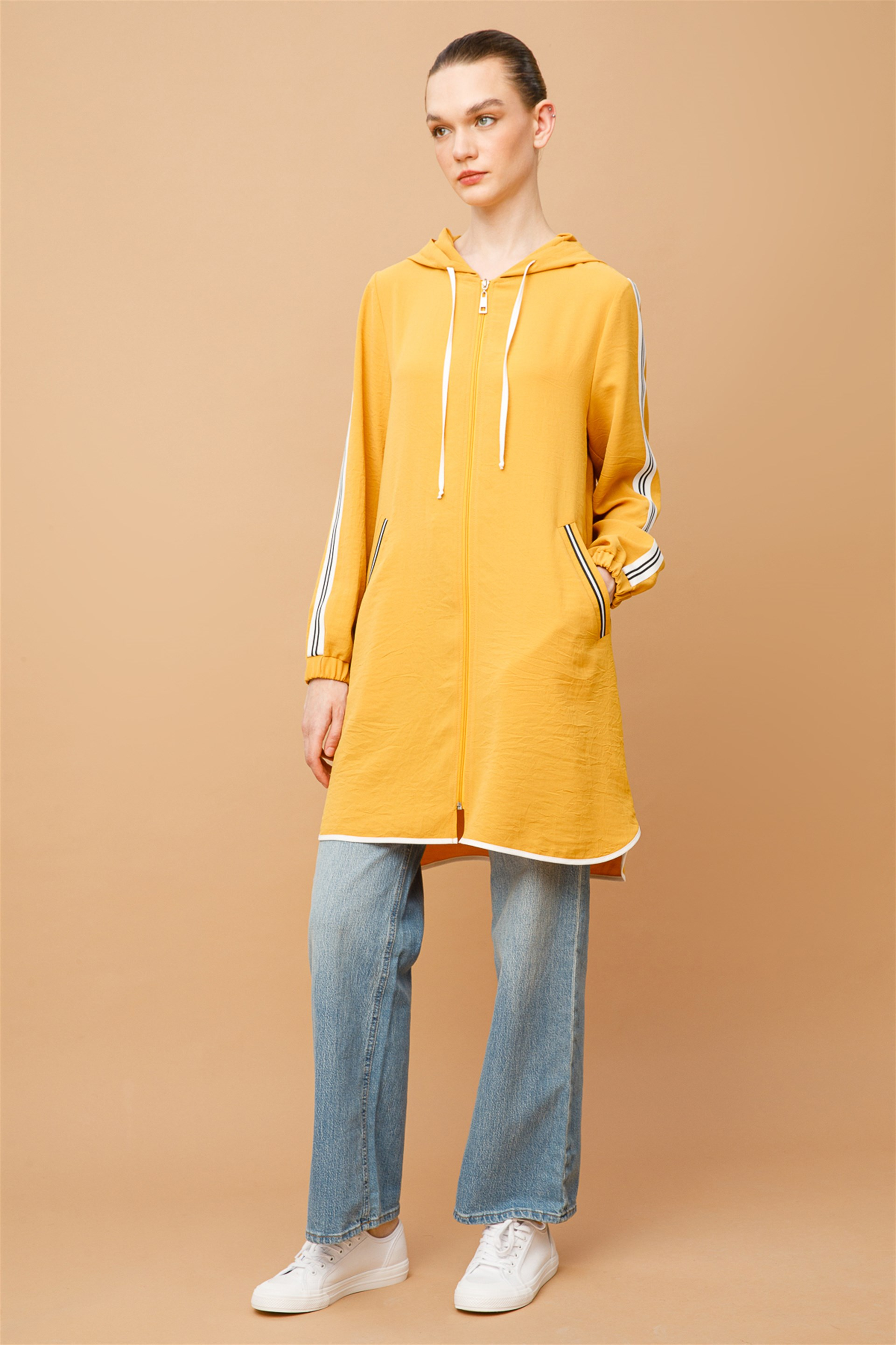 Beyaz Garnili Ara Boy Spor Kap Tunik-Hardal (221449M TUNİK-84)
