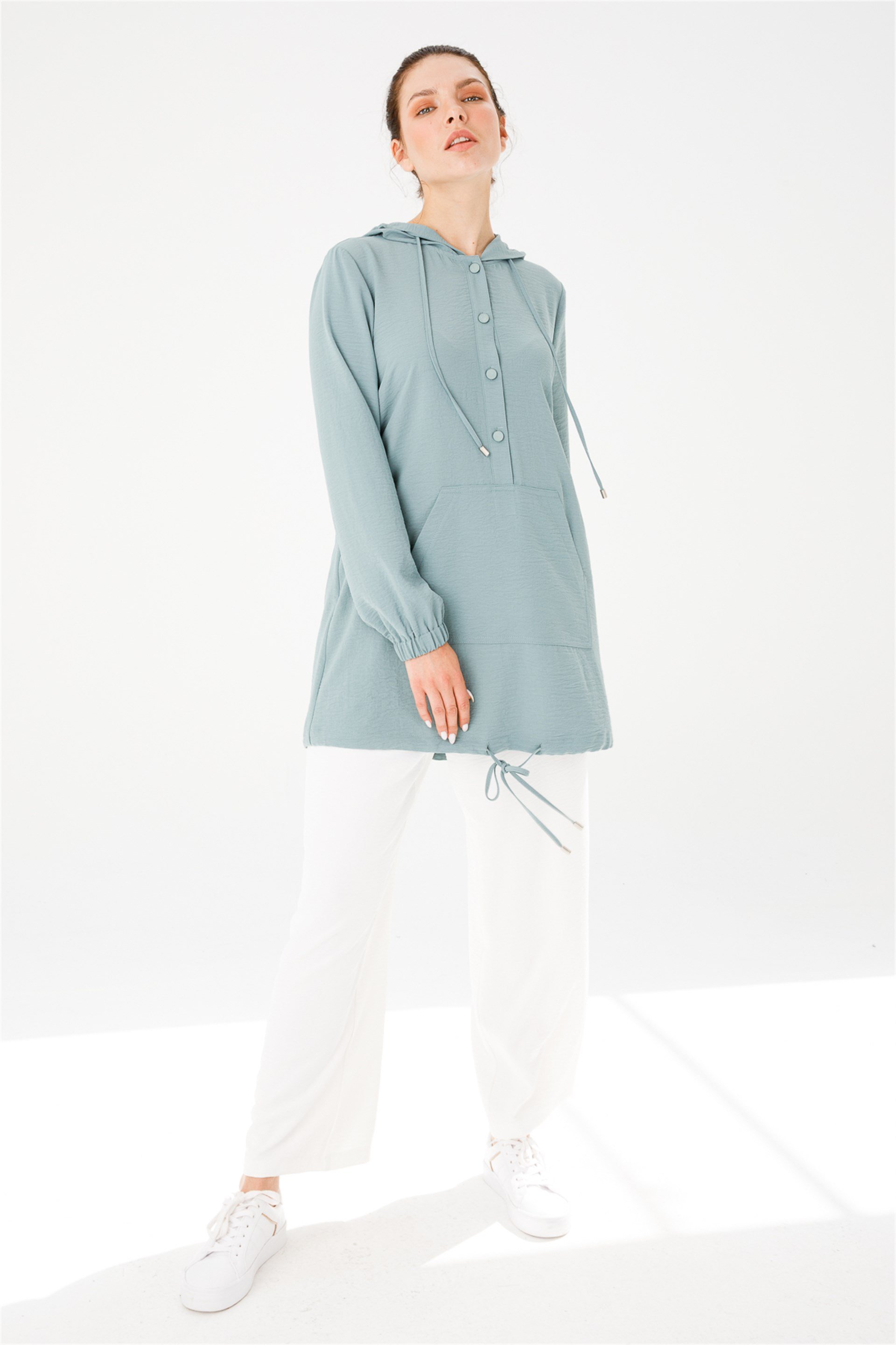 Beyaz Pantolonlu Spor Takım * Beden seçimi yapmadan önce lütfen bedenler üzerinde yer alan renk kutucuklarına tıklamayı unutmayınız! Üretim Ülkesi: Türkiye Sezon: 2021 İlkbahar Yaz Kumaş İçeriği: %100 Polyester Boy Uzunluğu: Pantolon: 100 cm , Tunik :110 cm. Manken Ölçüleri Giydiği Beden: 38 Boy: 176 cm Göğüs: 88 cm , Bel: 66 cm , Basen: 99 cm