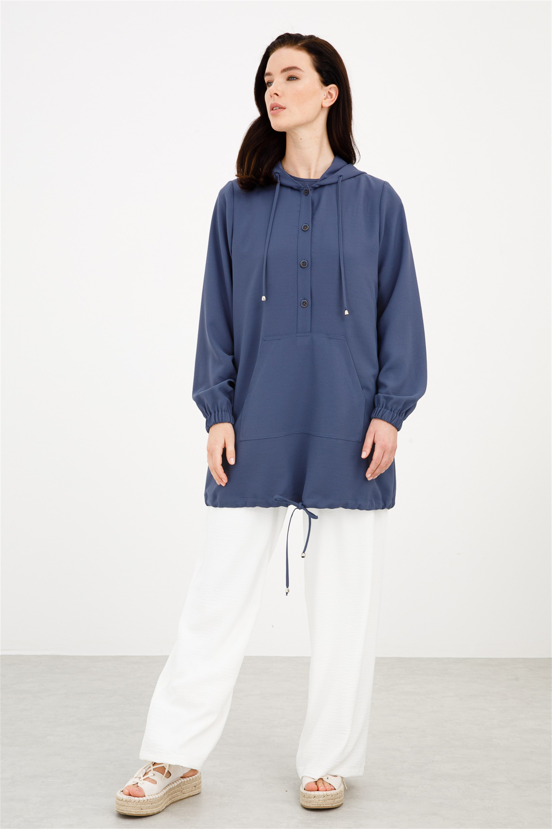 Beyaz Pantolonlu Spor Takım * Beden seçimi yapmadan önce lütfen bedenler üzerinde yer alan renk kutucuklarına tıklamayı unutmayınız! Üretim Ülkesi: Türkiye Sezon: 2021 İlkbahar Yaz Kumaş İçeriği: %100 Polyester Boy Uzunluğu: Pantolon: 100 cm , Tunik :110 cm. Manken Ölçüleri Giydiği Beden: 38 Boy: 176 cm Göğüs: 88 cm , Bel: 66 cm , Basen: 99 cm