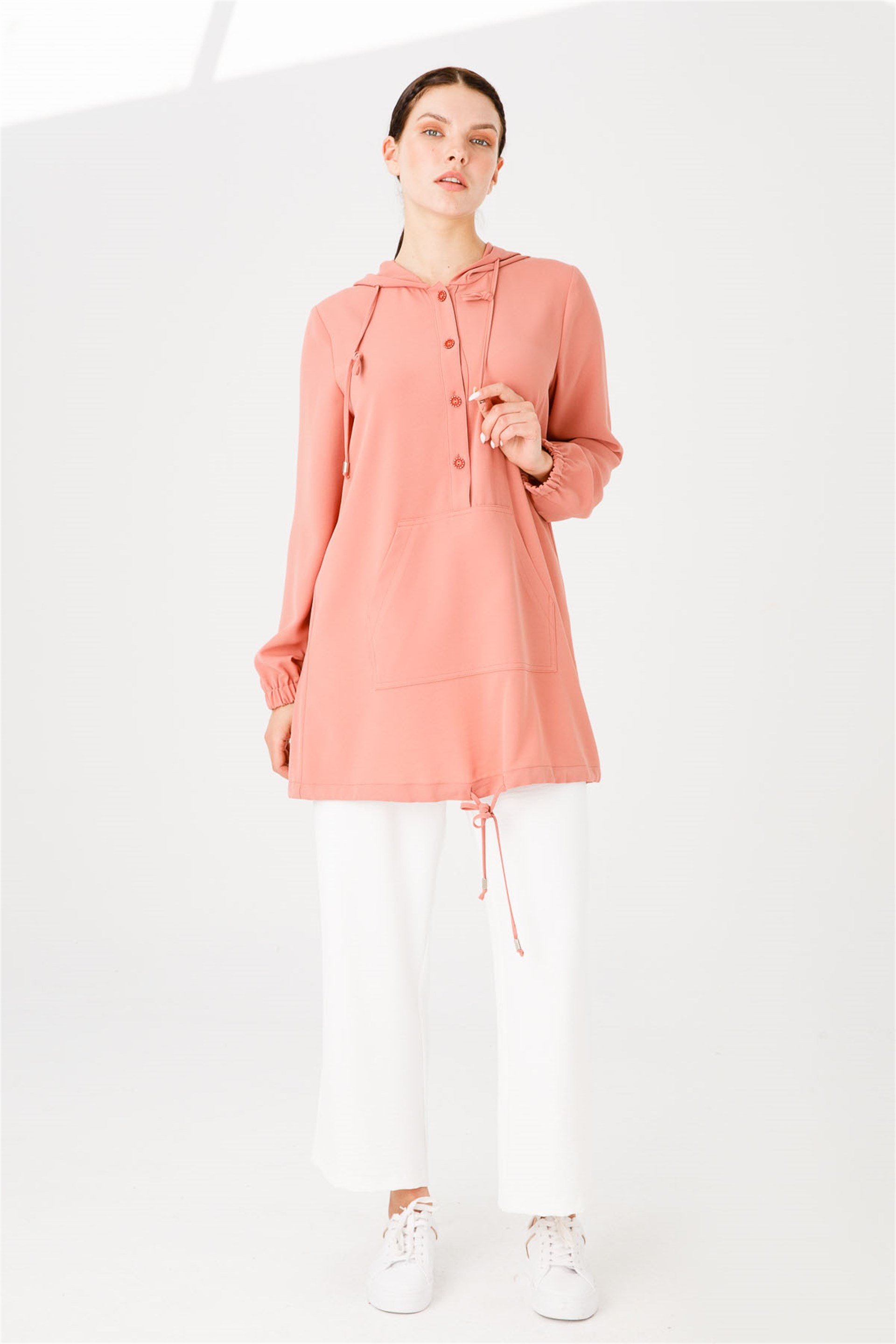 Beyaz Pantolonlu Spor Takım-Pudra (211886M TAKIM-10)