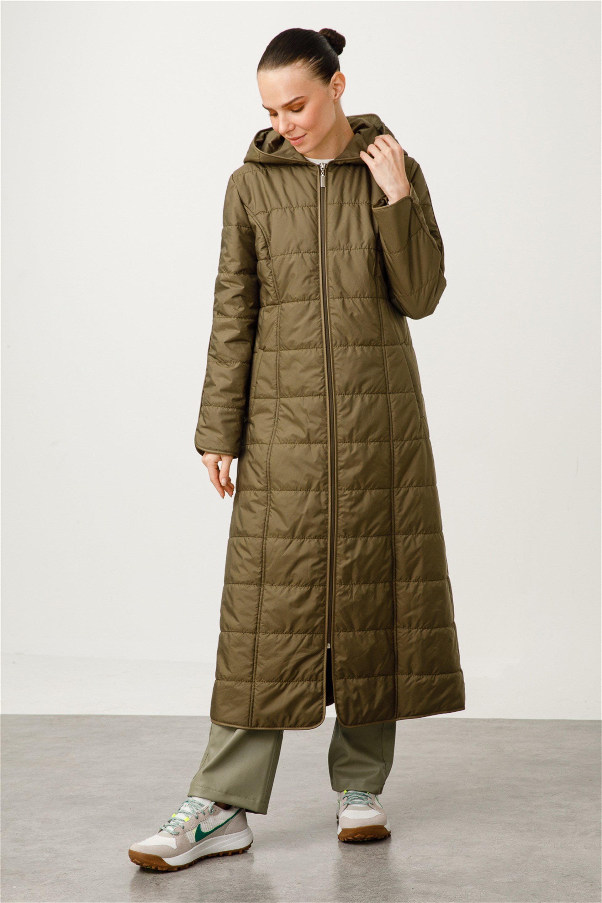 Biye Detaylar ile İşli Kapitone Spor Manto-Haki (222547M KABAN-20)