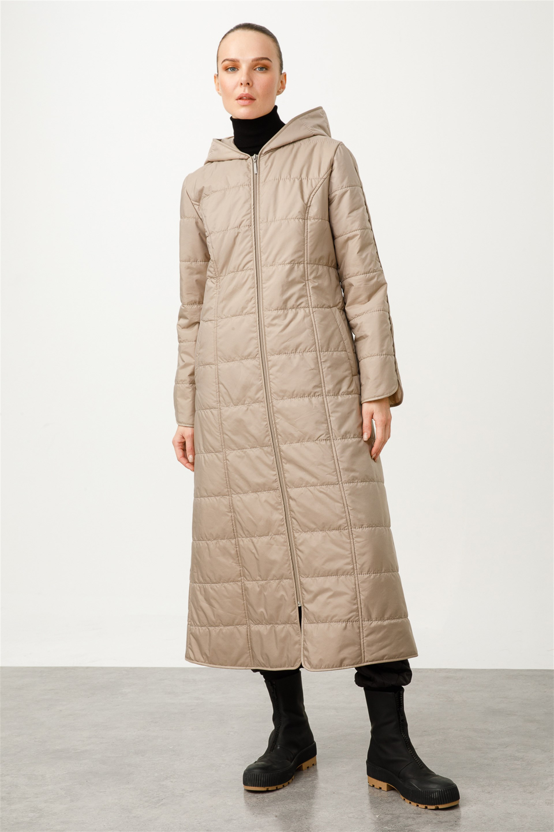 Biye Detaylar ile İşli Kapitone Spor Manto-Taş (222547M KABAN-12)