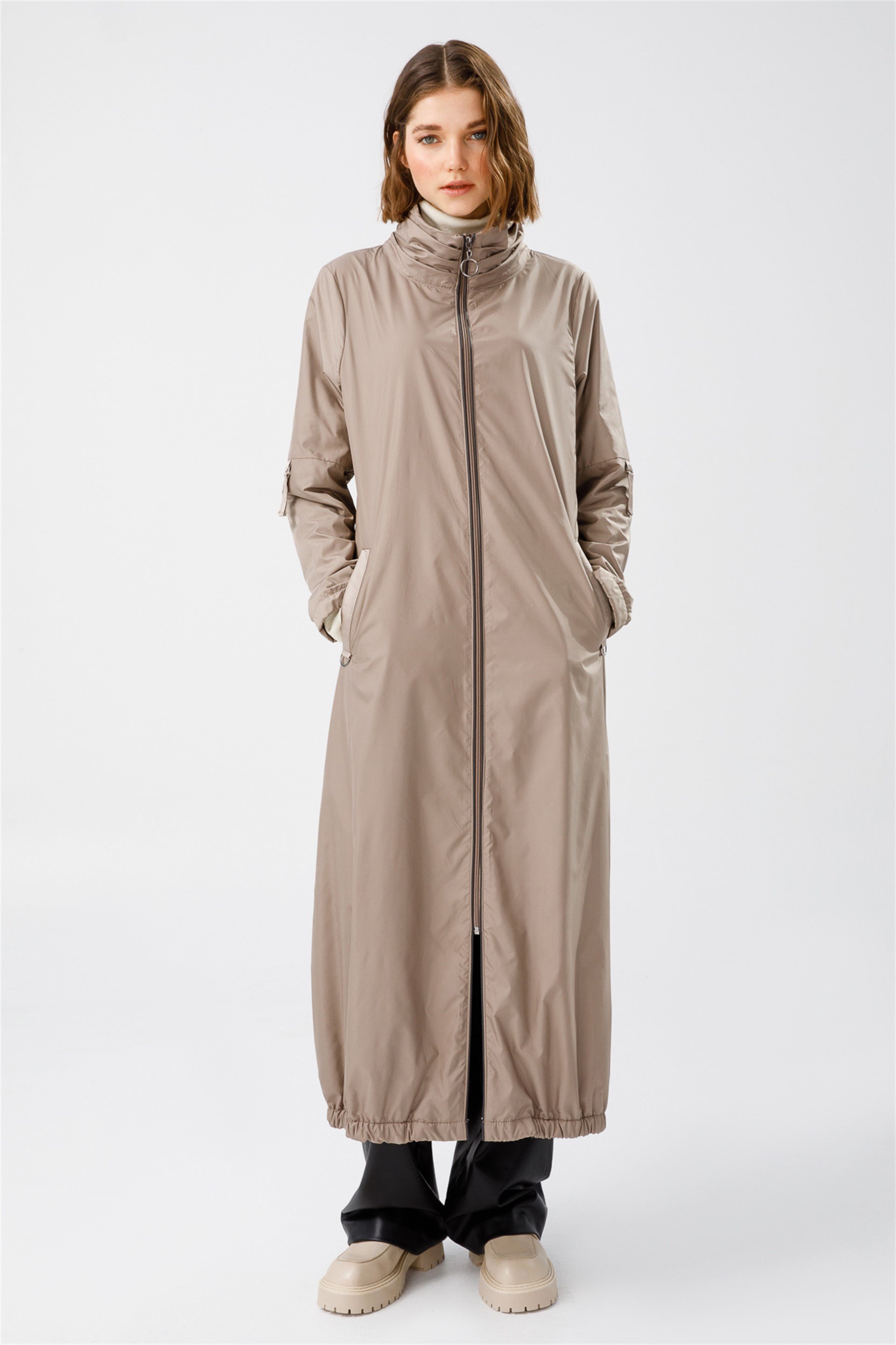 Biye Detaylı İçi Peluşlu Uzun Kaban-Vizon (902571S KABAN-16)