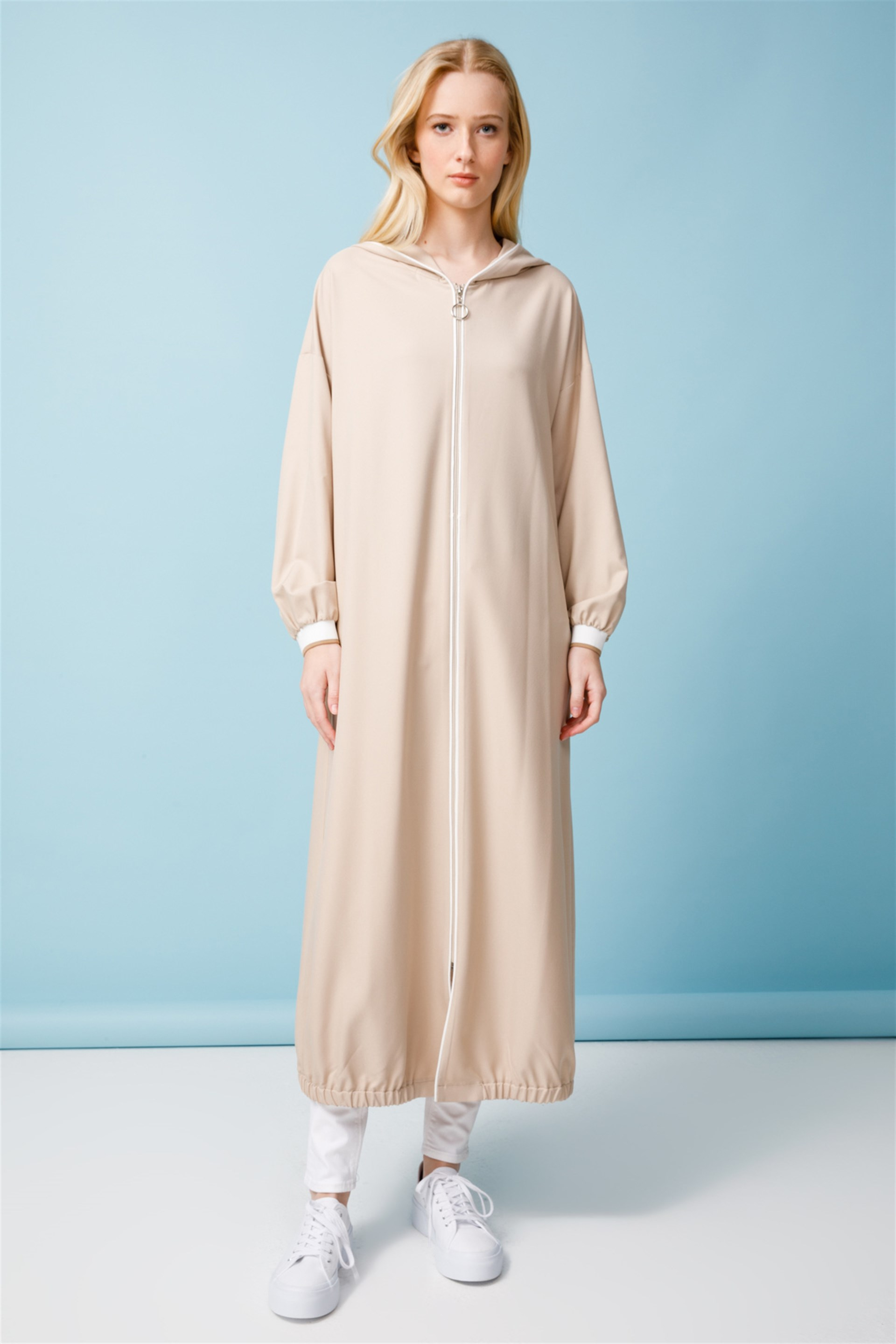 Biyeli Hafif Rahat ve Zor Kırışan Kumaştan Kapüşonlu Kap-Taş (221879M PARDESÜ-12)