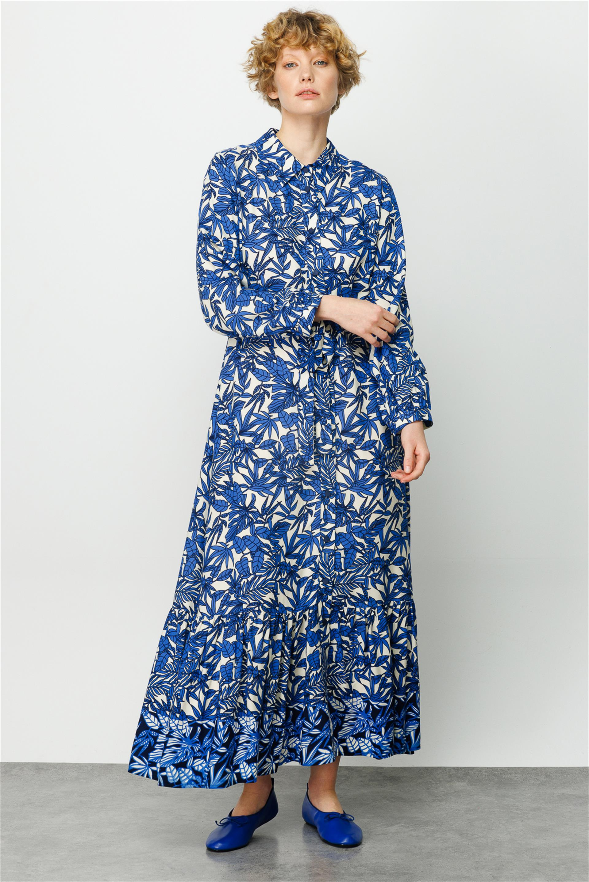 Bleu Tam Boy Nefes Alan ve Hafif Kumaş Elbise-Ekru