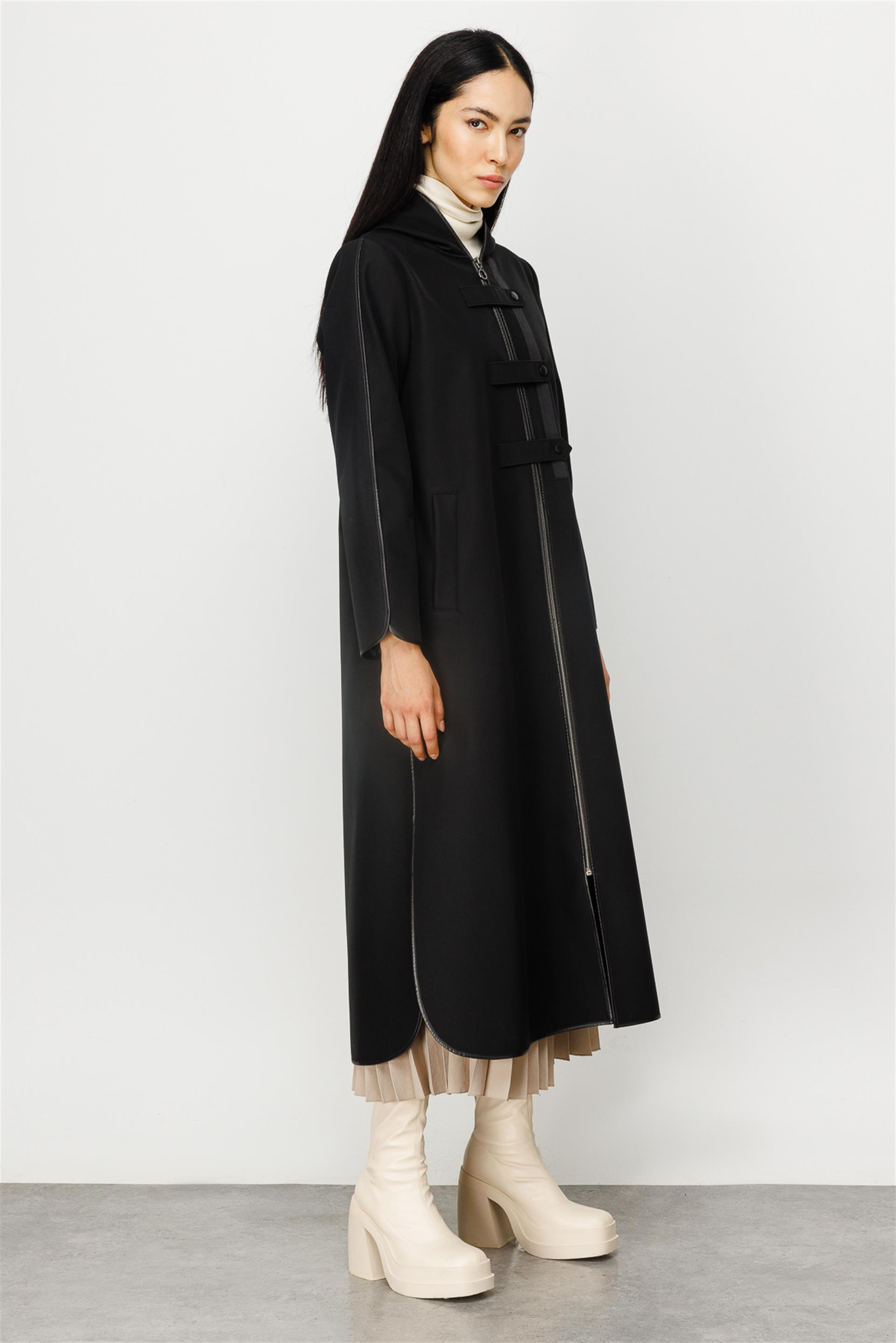 Brit Kapamalı Comfort Kumaş Tüm Beden Polar Kaplı Spor Manto Kaban-Siyah (232590M KABAN-01)