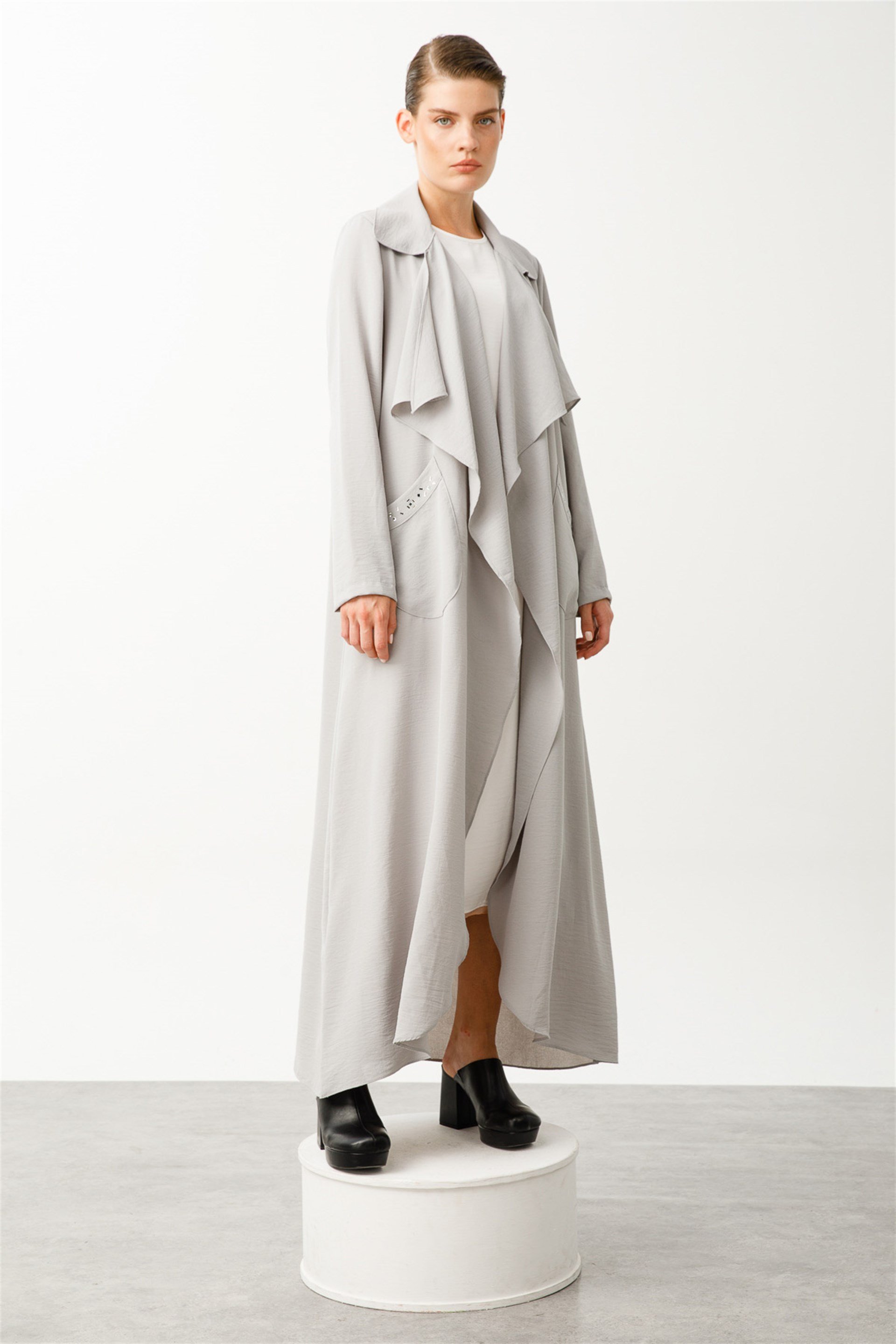 Cep Kenarı Taş İşleme Volanlı Rahat Çok Amaçlı Kap Ferace-Gri (221552M PARDESÜ-18)
