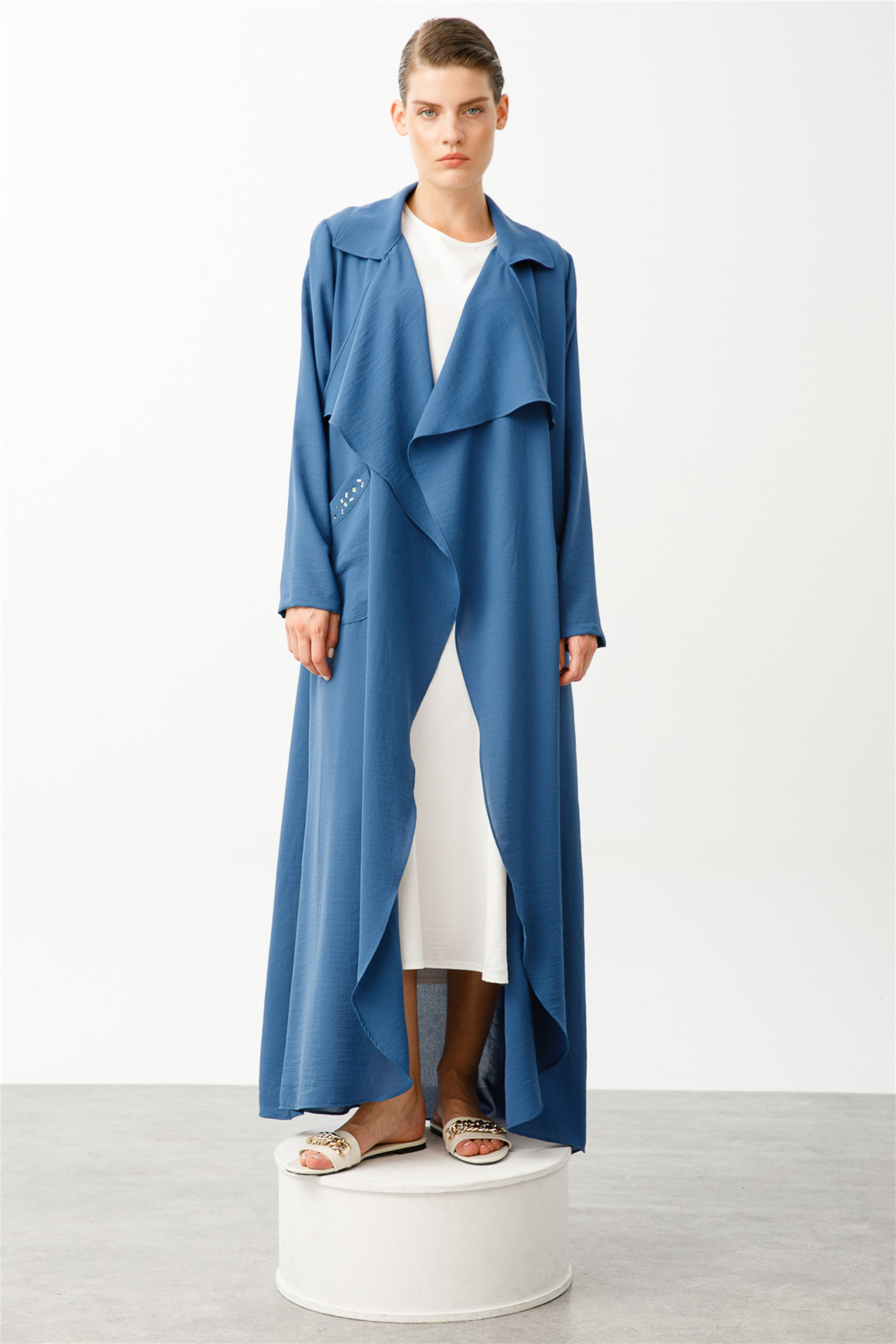 Cep Kenarı Taş İşleme Volanlı Rahat Çok Amaçlı Kap Ferace-İndigo (221552M PARDESÜ-44)