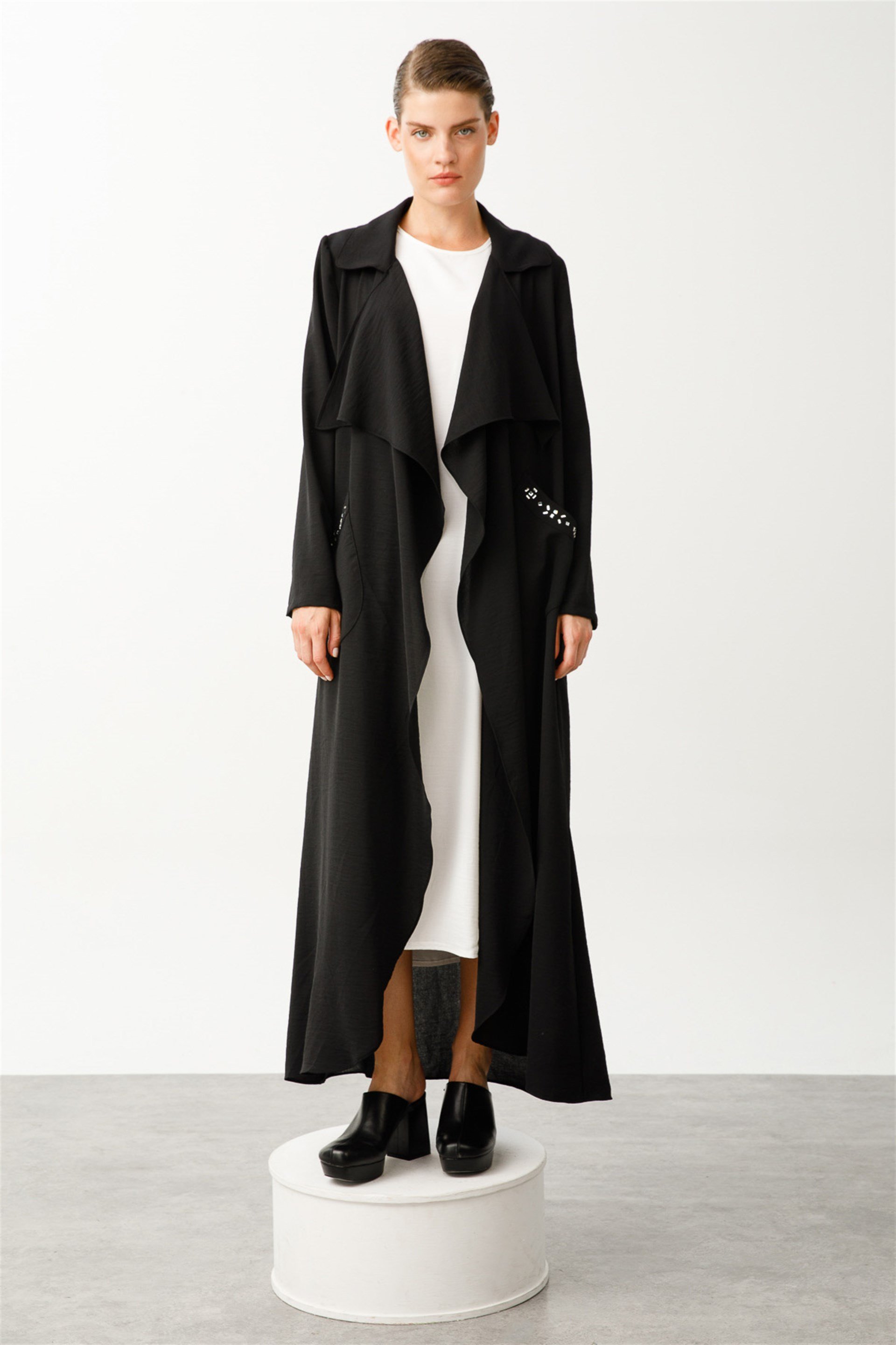Cep Kenarı Taş İşleme Volanlı Rahat Çok Amaçlı Kap Ferace-Siyah (221552M PARDESÜ-01)
