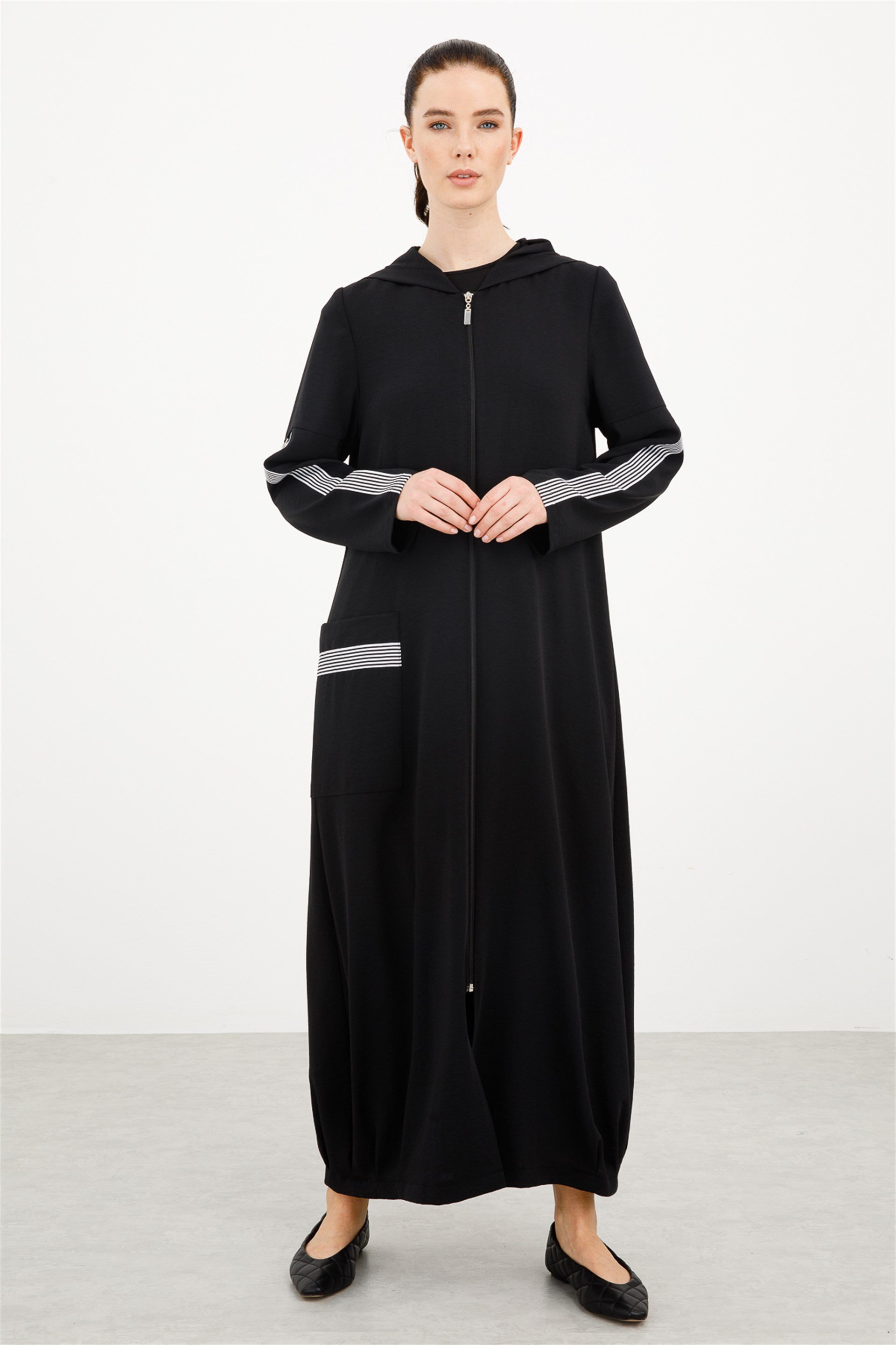 Çizgili Kol Detaylı Spor Kap-Siyah
