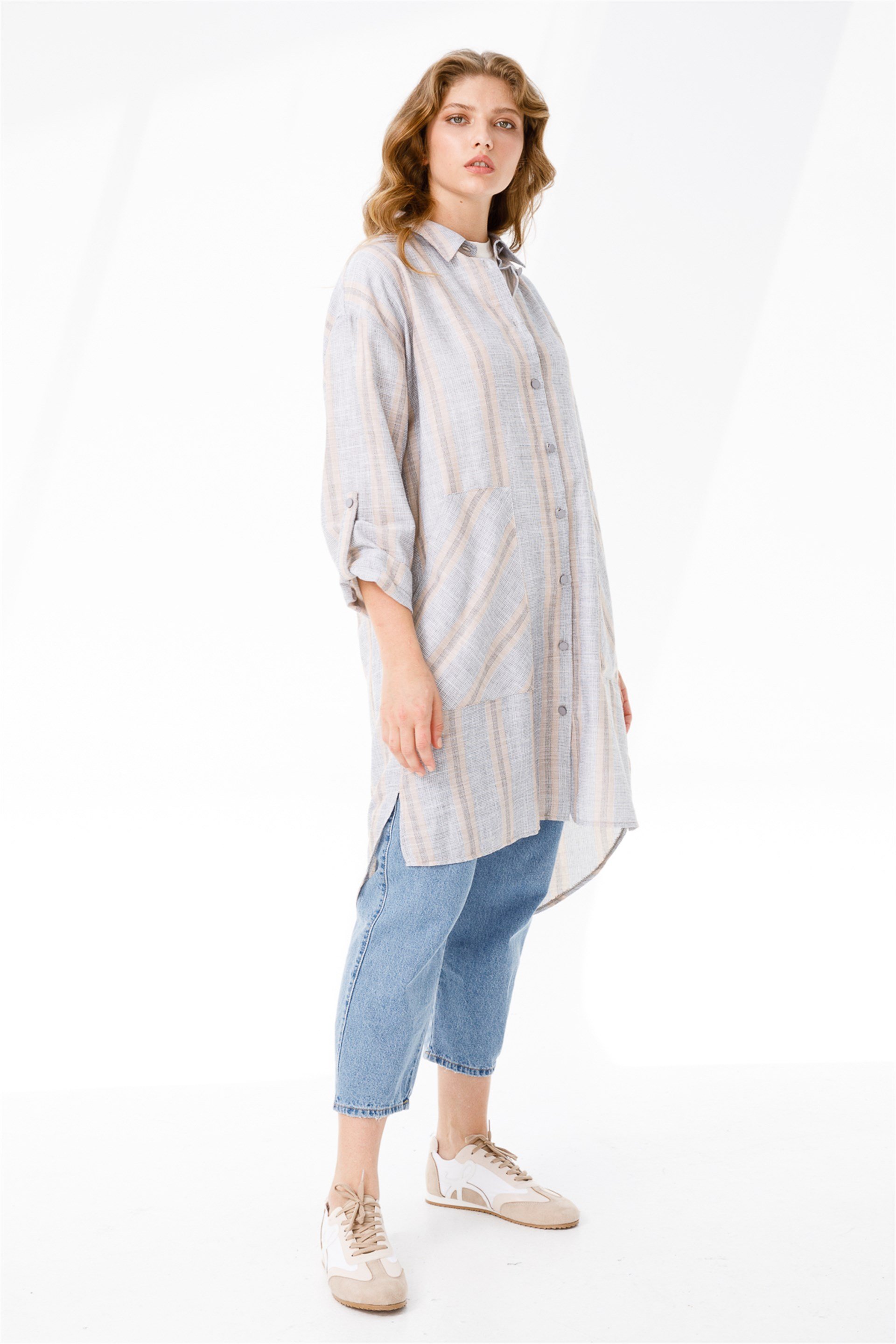 Çizgili Pamuk Rahat Kalıp Tunik-Kahve (211509M KAP-02)