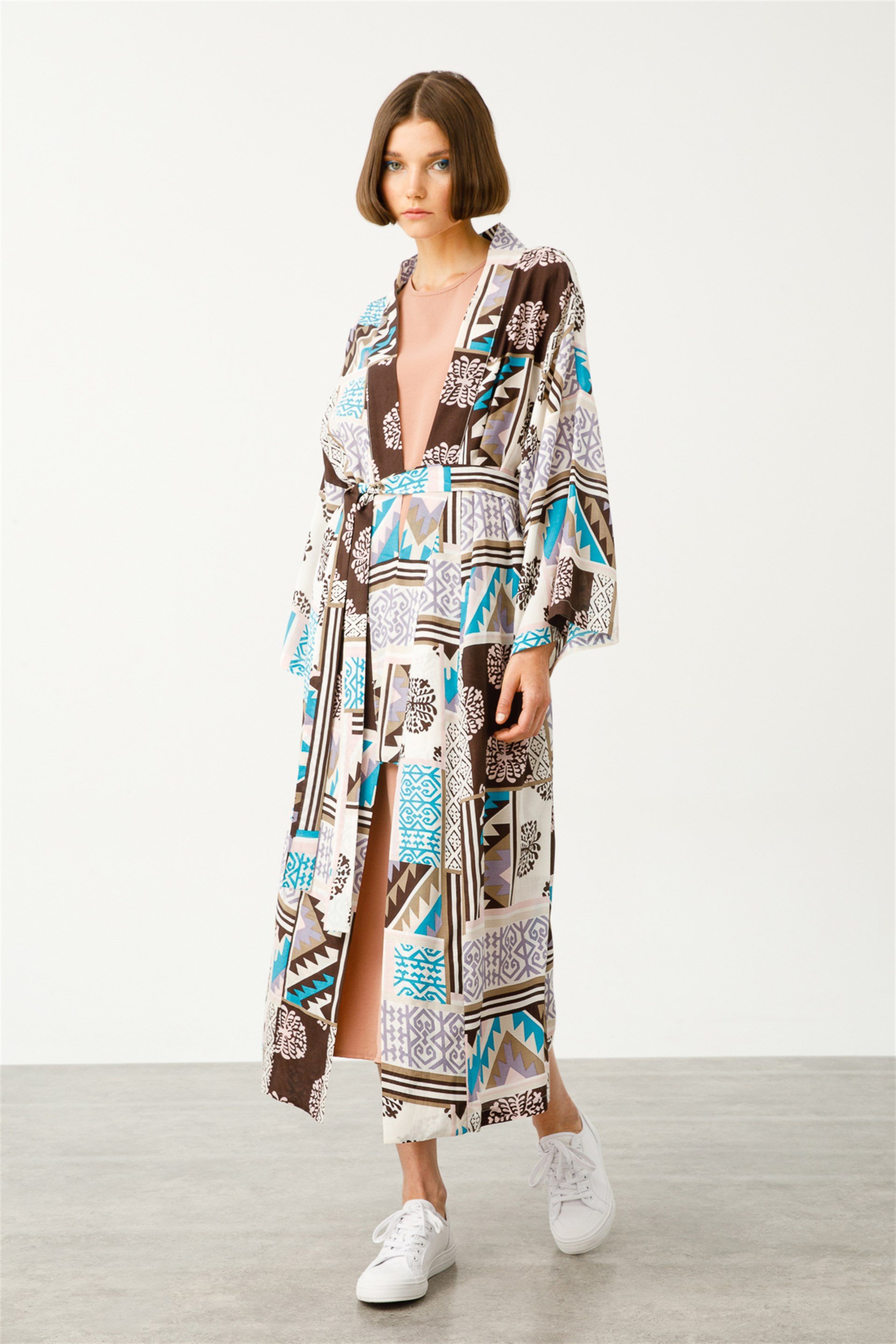 Çok Amaçlı Kullanım Sunan Kimono Ferace-Kahve (221837M KİMONO-02)