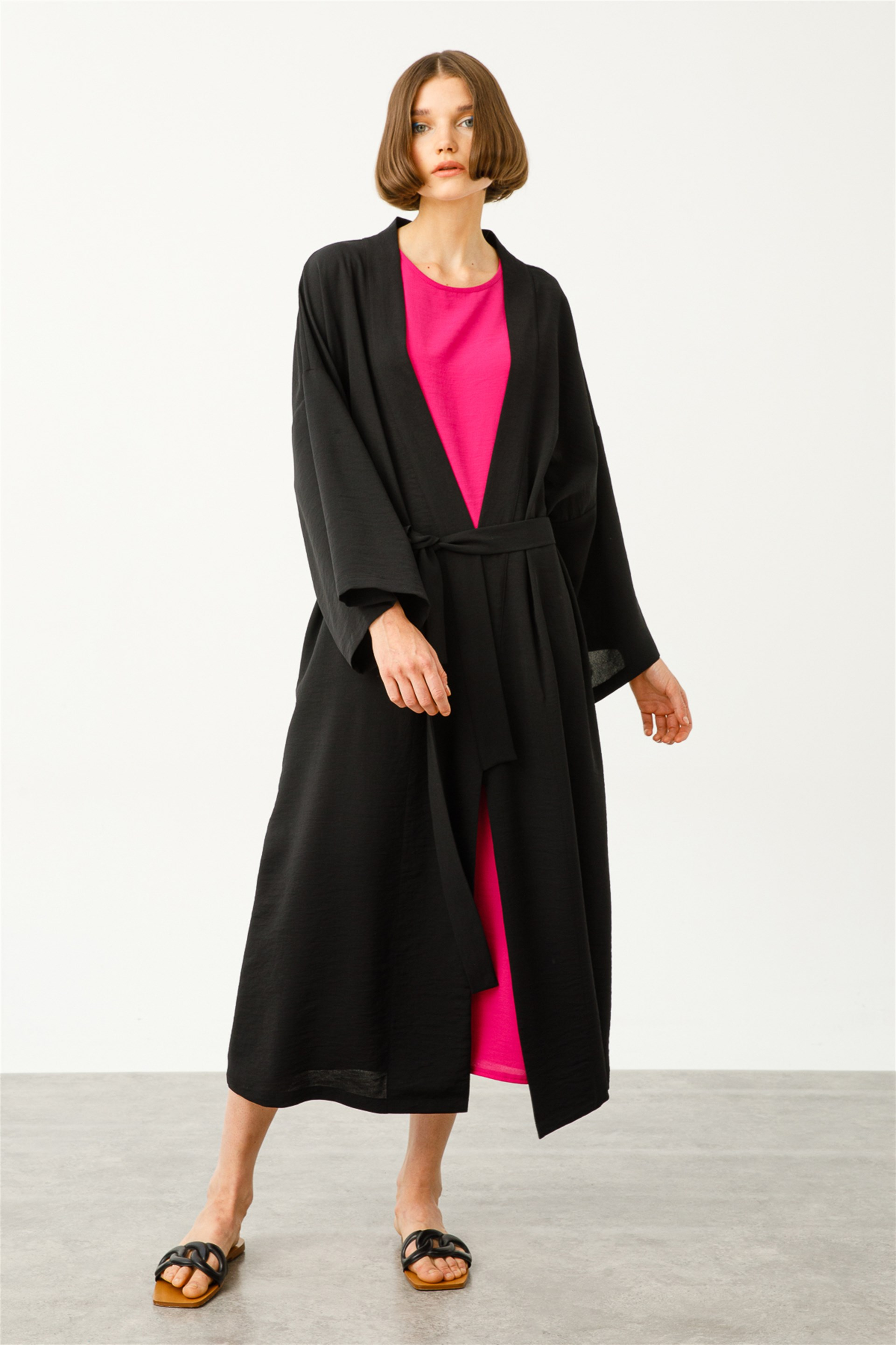 Çok Amaçlı Kullanım Sunan Kimono Ferace-Siyah (221837M KİMONO-01)