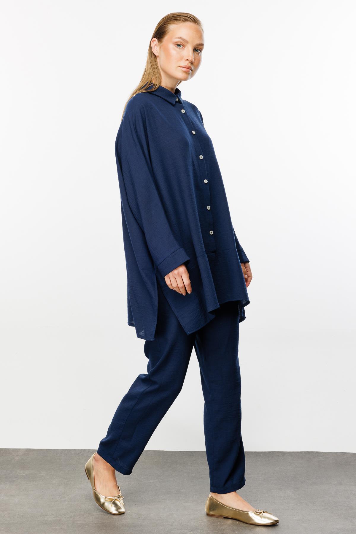 Comfy Keten Dokuma Spor Pantalonlu Takım