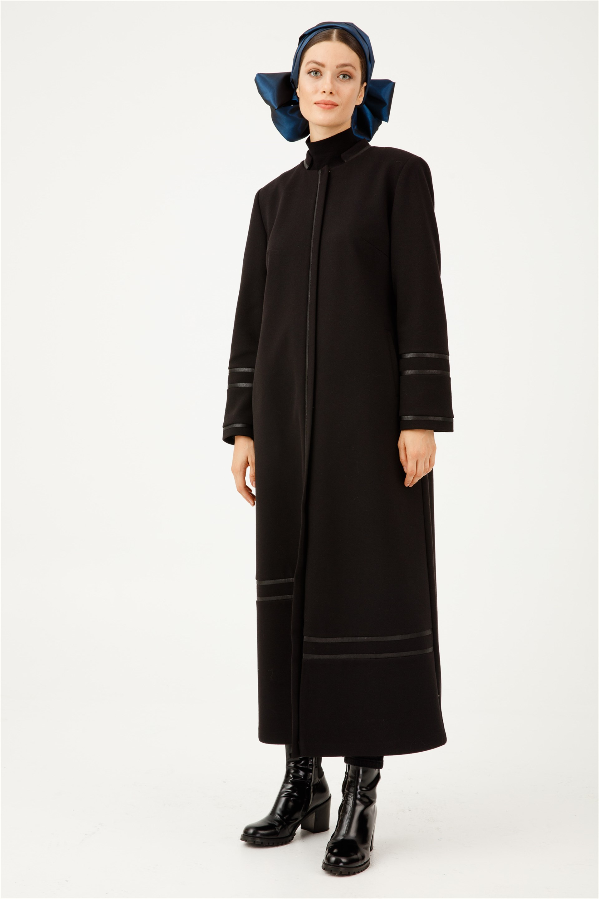 Deri Biye Detaylı Manto-Siyah (212564M KABAN-01)