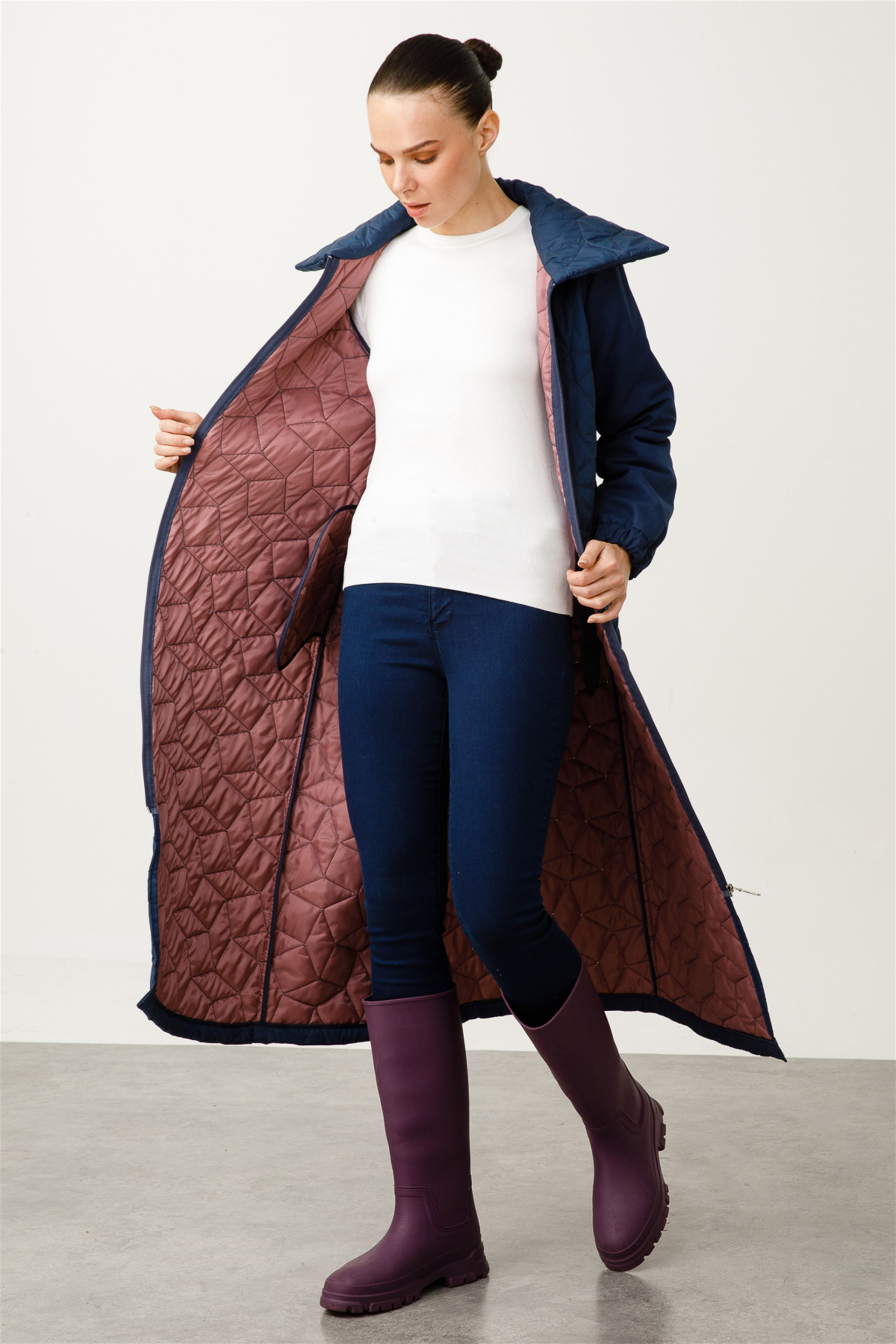 Desen Kapitoneli Helene Kumaş Garnili Spor ve Zamansız Kapitone Manto-Laci (222545M KABAN-04)