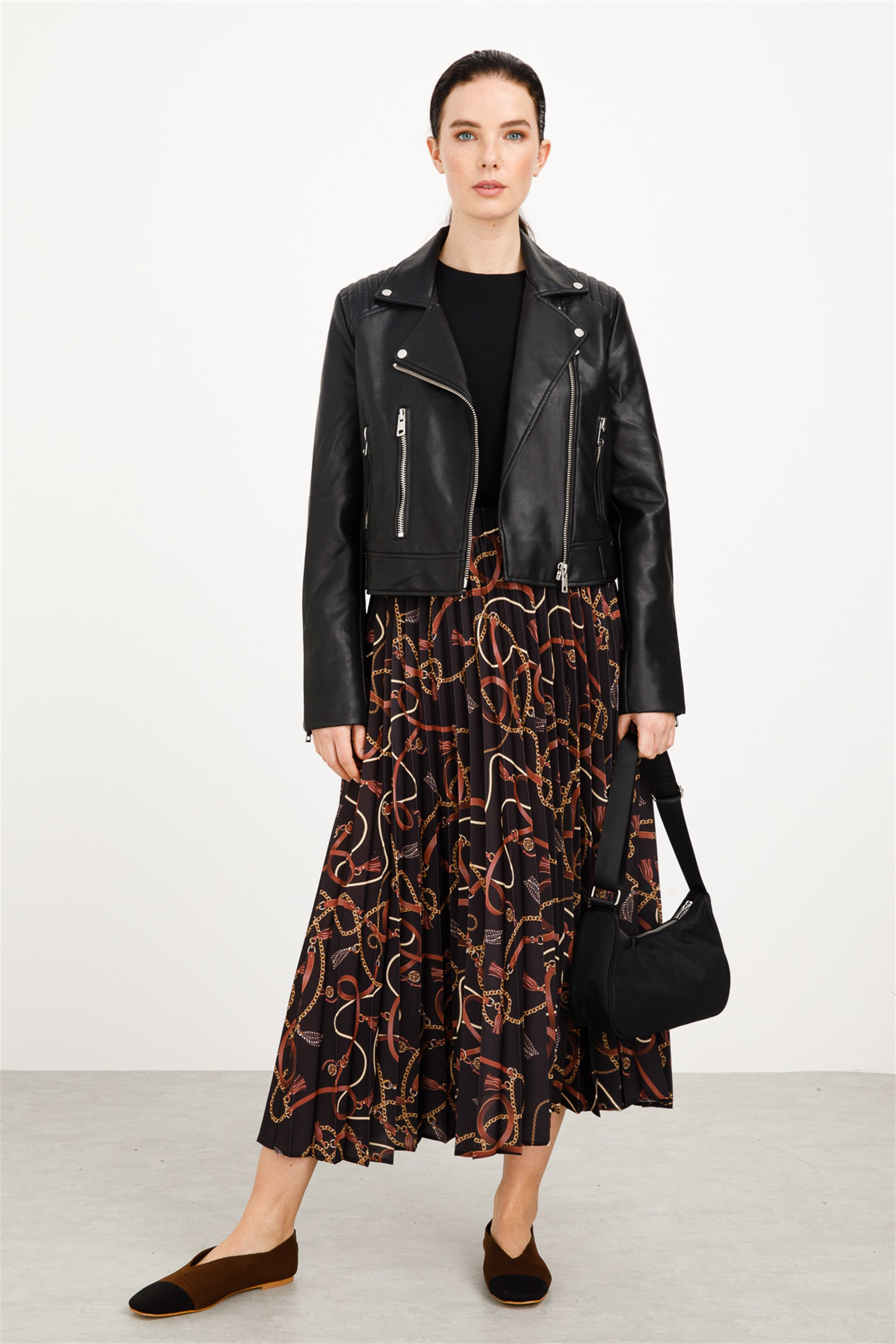Desenli Piliseli, Astarsız, Bel Kısmı Lastikli Etek-Siyah (211211M ETEK-01)