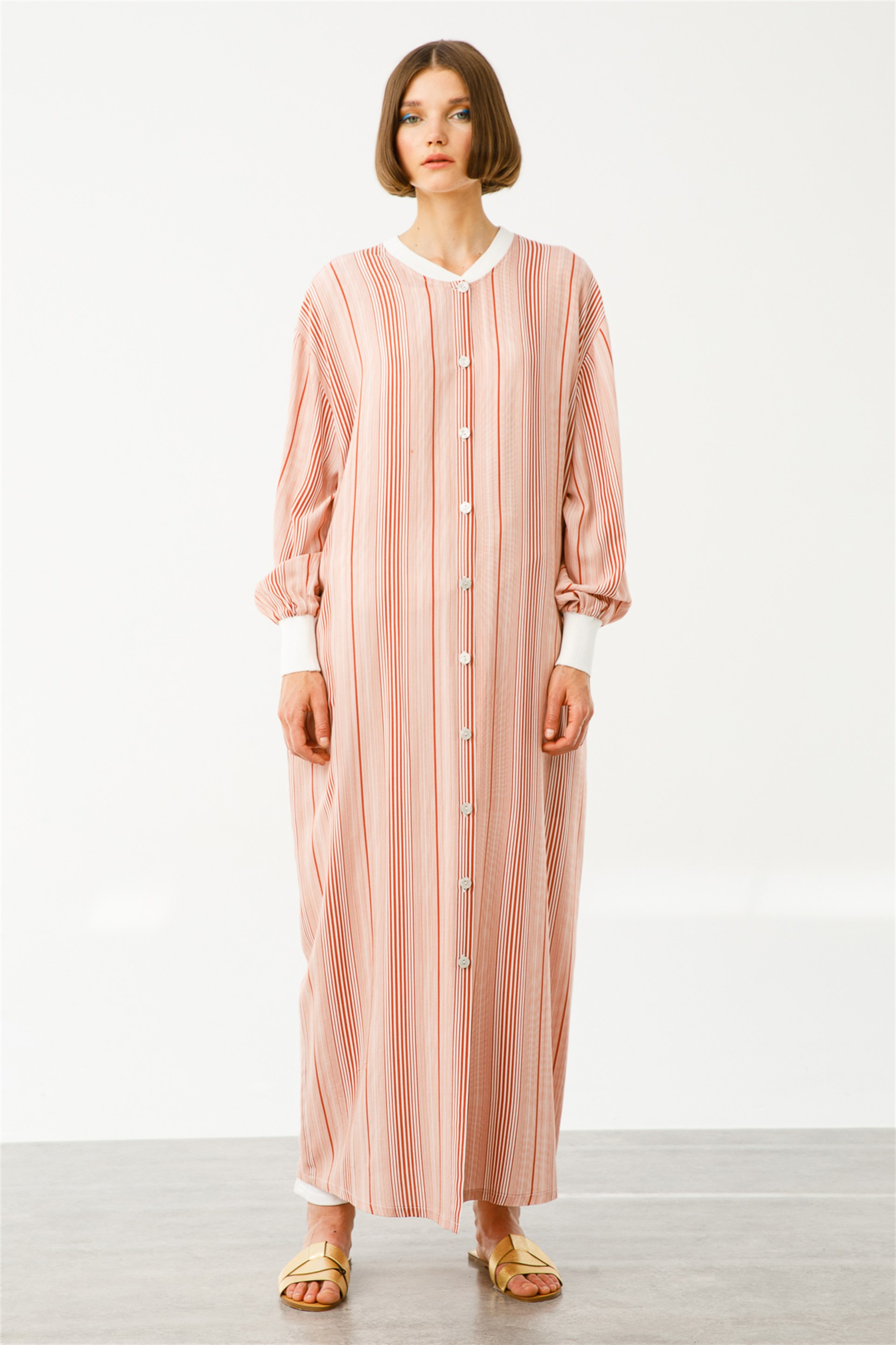 Doğal Viskon Çizgili Rahat Spor Kap Üretim Ülkesi: Türkiye Sezon: 2022 İlkbahar Yaz Kumaş İçeriği: %100 Viskon Boy Uzunluğu: 133 cm Ürün Ölçüleri 38 Beden için: Göğüs 121 cm, Bel 128 cm, Bedenler arası 5 cm fark etmektedir. Manken Ölçüleri Giydiği Beden: 36 Boy: 175 cm Göğüs: 75 cm , Bel: 60 cm , Basen: 88 cm
