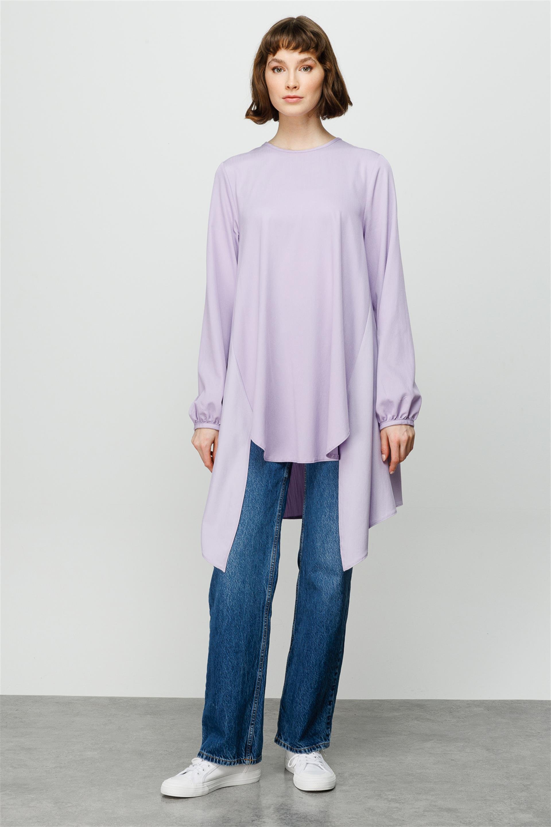 Doğal (Viskon) İçerikli Zamansız Kap Tunik-Lila (231406M TUNİK-36)