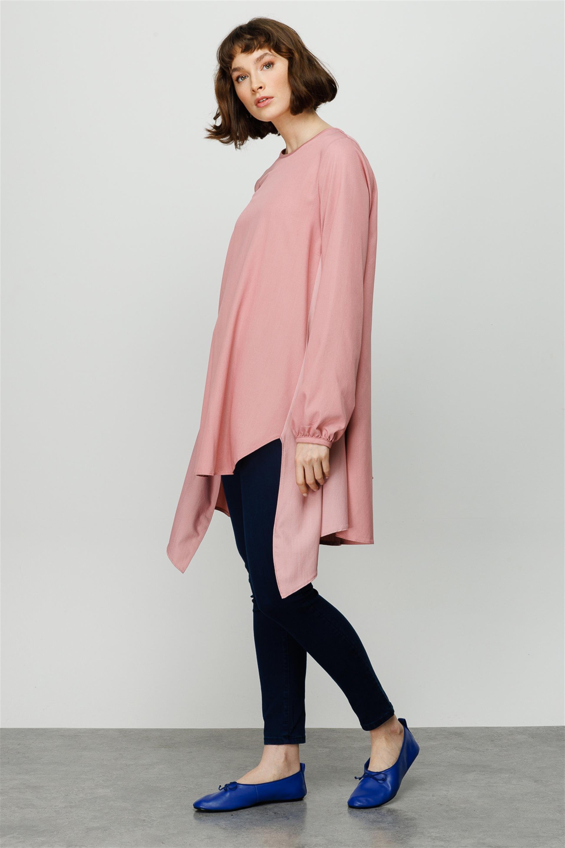 Doğal (Viskon) İçerikli Zamansız Kap Tunik-Pembe (231406M TUNİK-17)