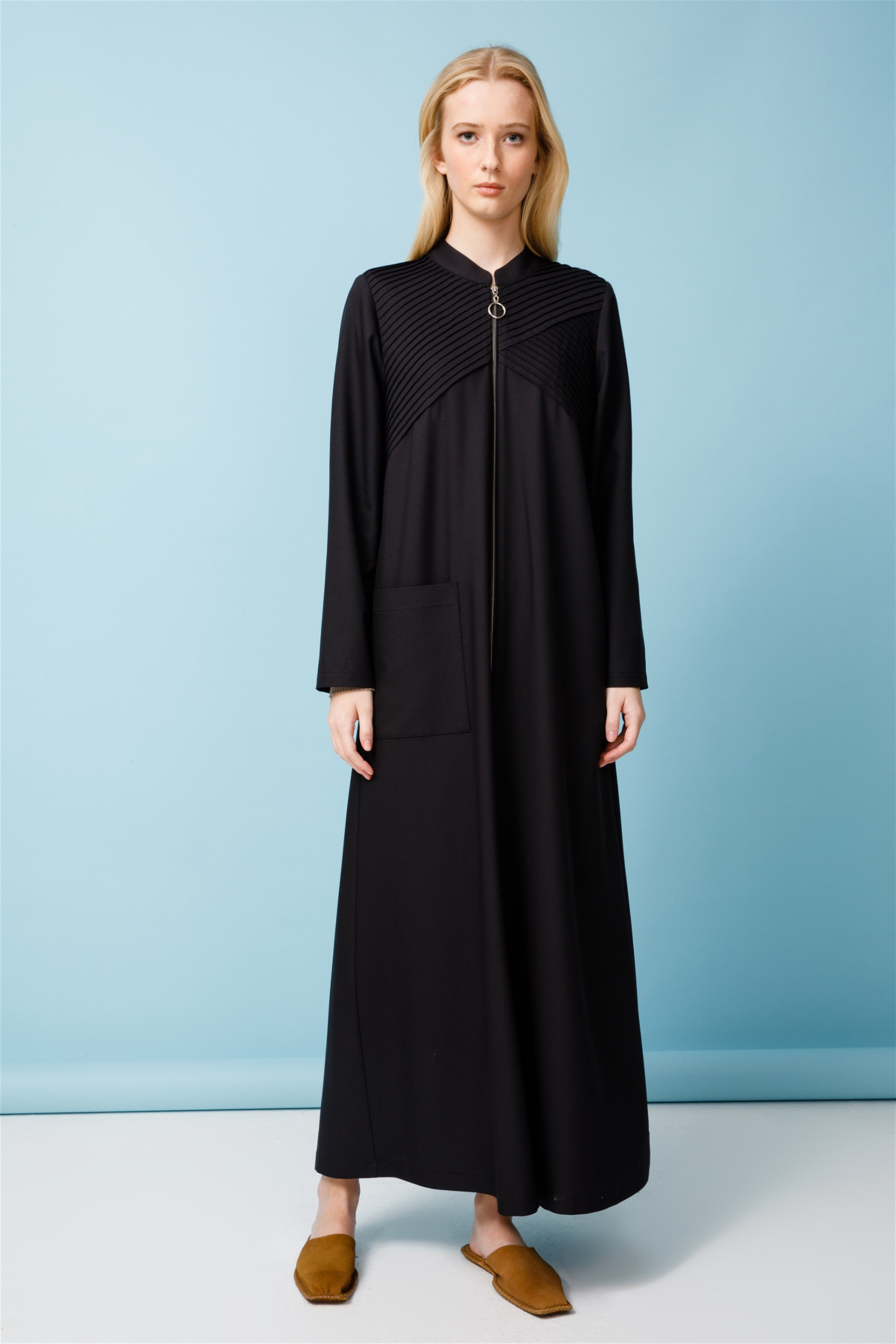 El İşi Nervür Dikişli Zor Kırışan Kumaştan Fermuar Kapamalı Tam Boy Kap-Siyah (221543M PARDESÜ-01)