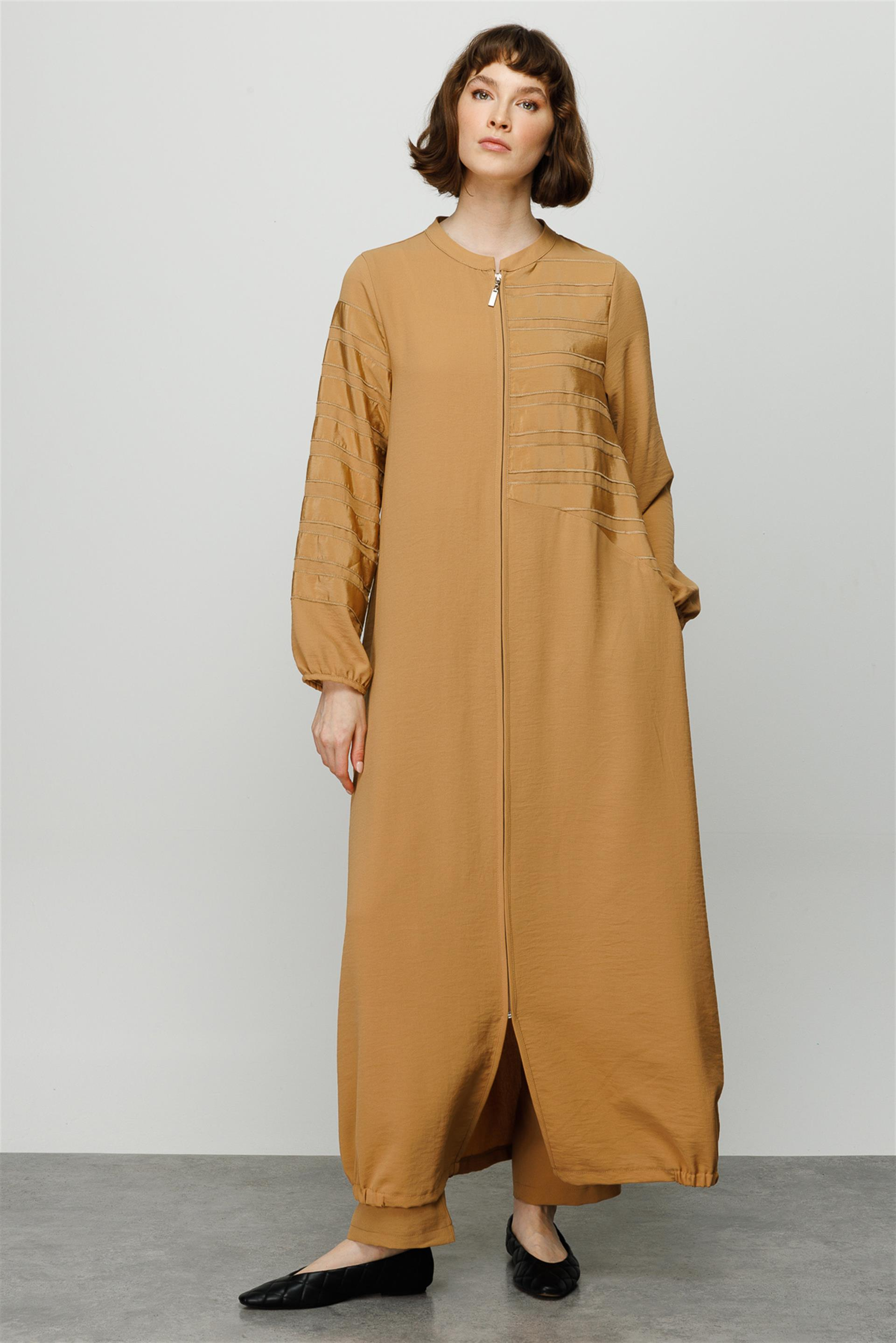 El İşi Tafta İşleme Garnili Nefes Alan Zor Kırışan Kumaş Kap-Camel (231539M FERACE-08)