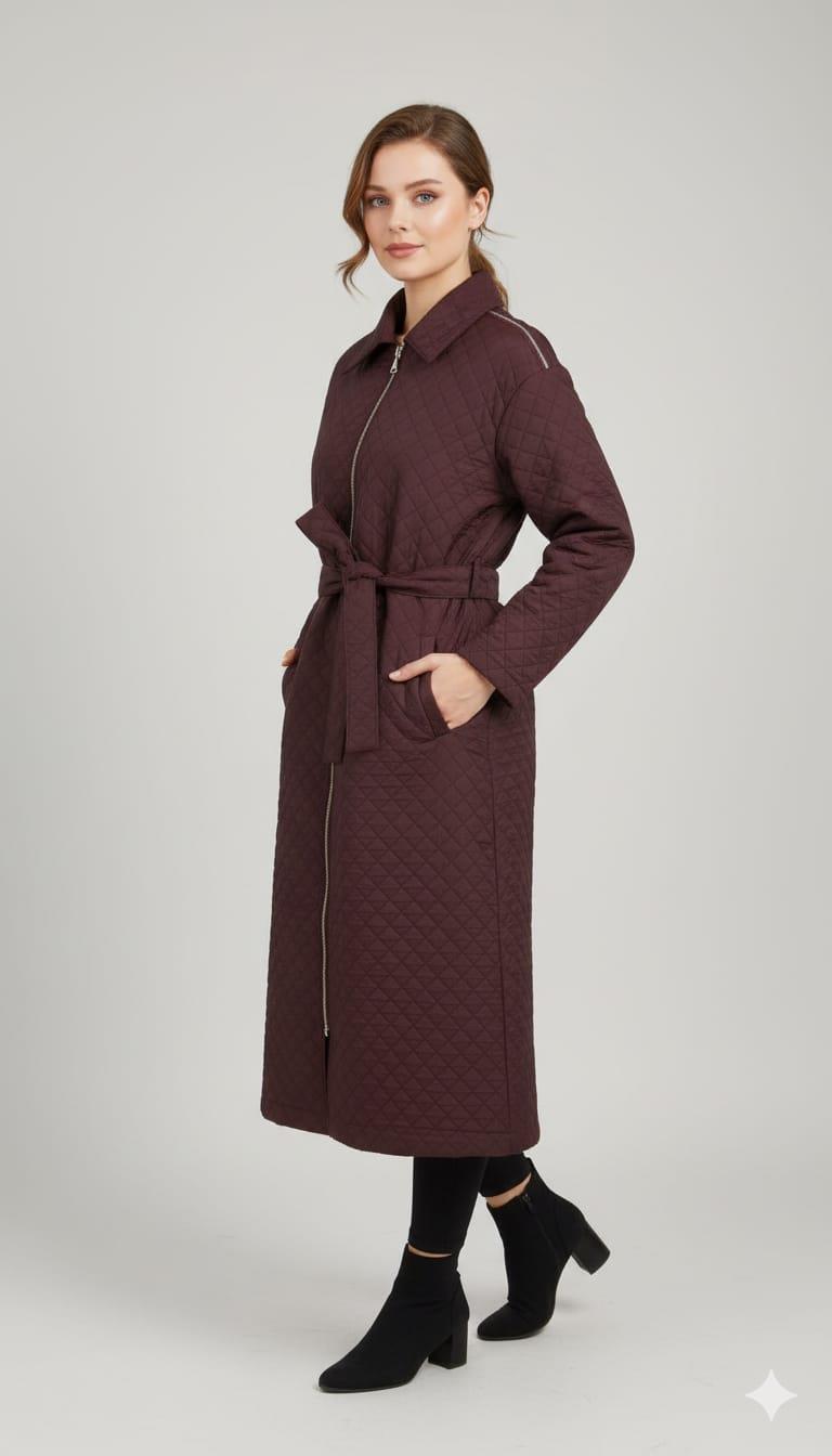 HZR Fermuar Detaylı Jakar Kapitone Spor Trench Kap-Kahve HZR Fermuar Detaylı Jakar Kapitone Spor Trench Kap-MOR