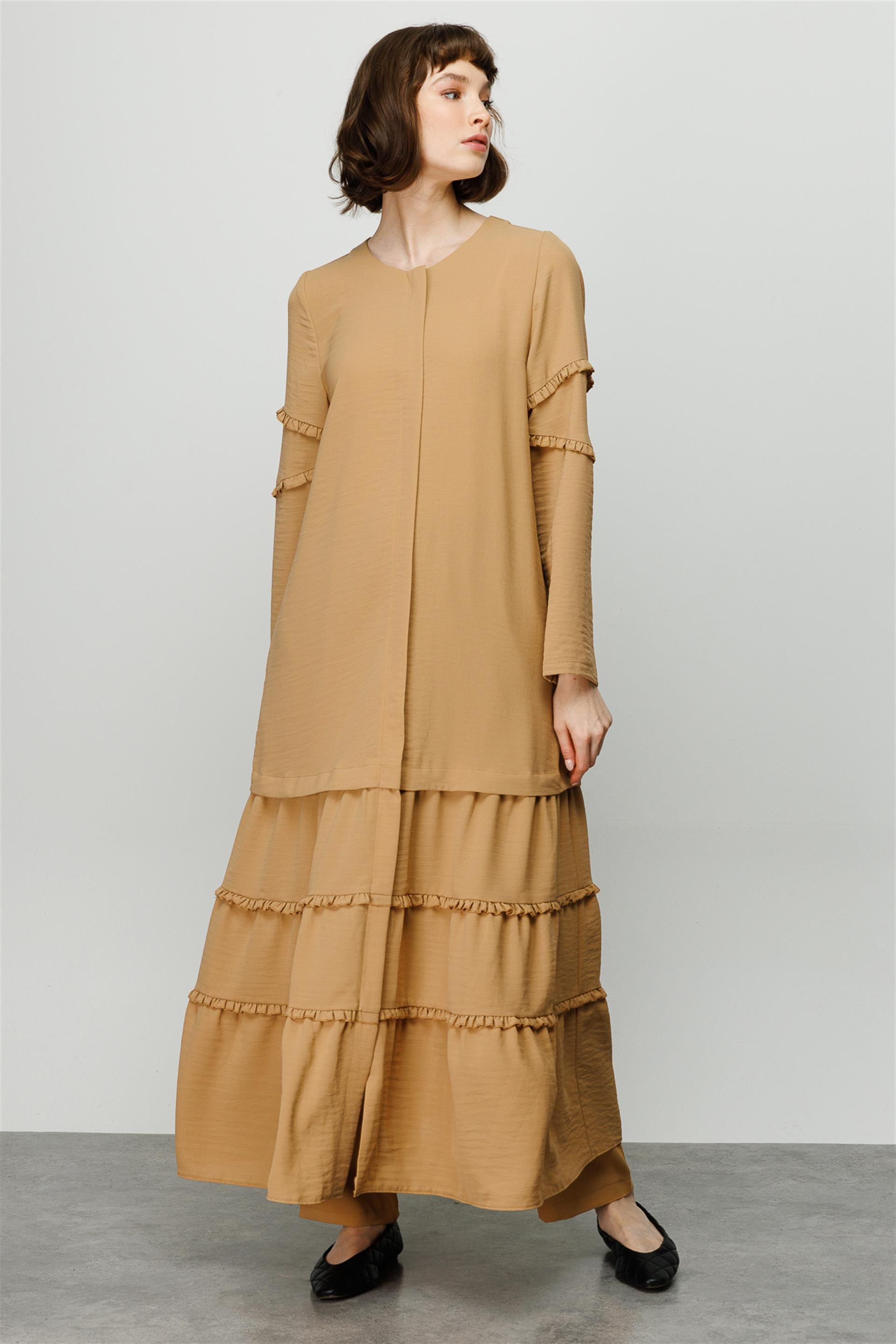 Es Tarzı Nefes Alan Kumaştan Ferace-Camel (231556M ES FERACE-08)