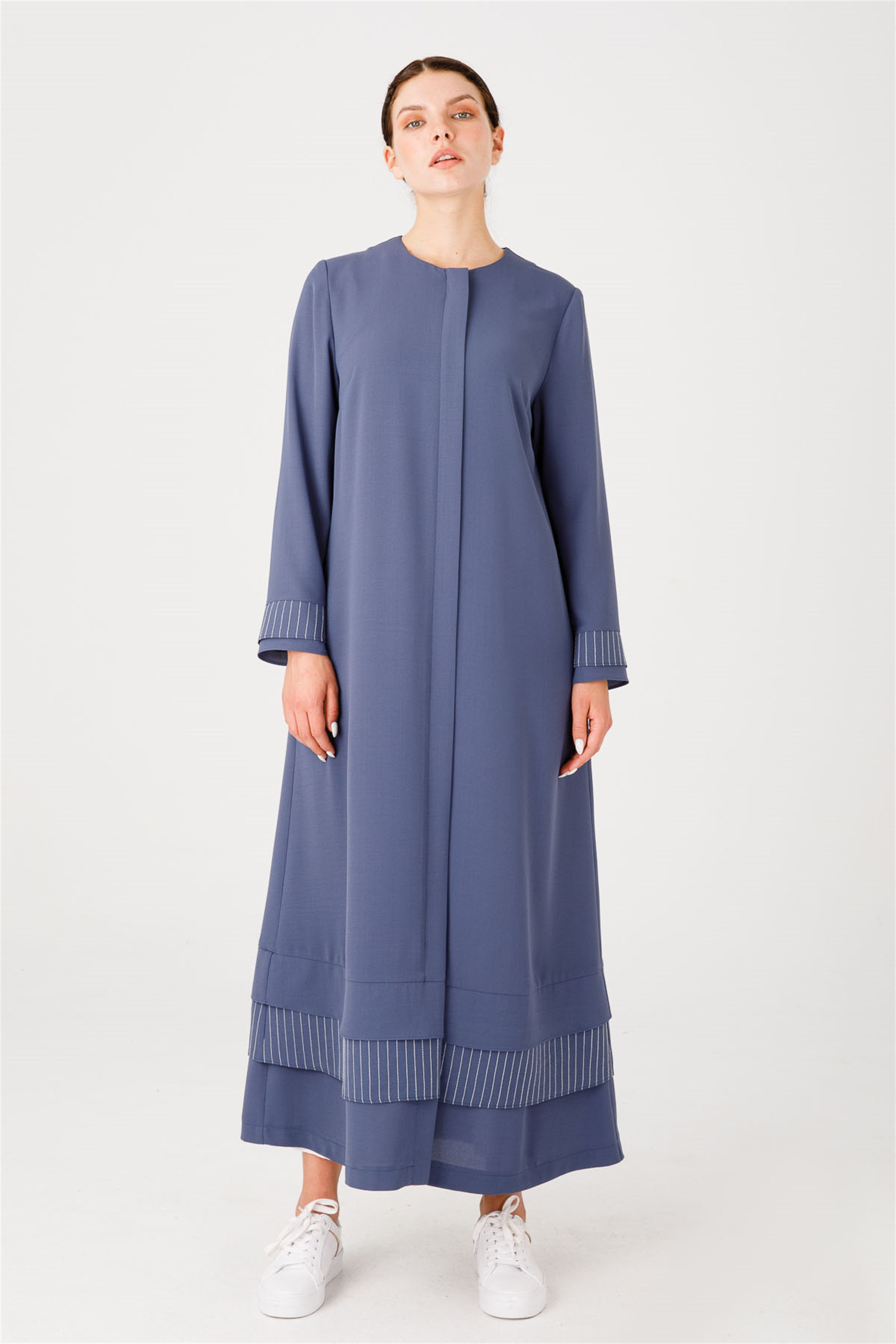 Etek Ucu Çizgi Desen Detaylı Spor Boy Kap Yakasız, önü fermuarlı, astarsız. Etek ucu çizgi desenli sizi gündelik hayatınızda şık ve rahat hissettirecek şekilde tasarlanmış zor kırışan, nefes alan kumaştan tam boy kap * Beden seçimi yapmadan önce lütfen bedenler üzerinde yer alan renk kutucuklarına tıklamayı unutmayınız! Üretim Ülkesi: Türkiye Sezon: 2021 İlkbahar Yaz Kumaş İçeriği: %100 Polyester Boy Uzunluğu: 132 cm Manken Ölçüleri Giydiği Beden: 38 Boy: 176 cm Göğüs: 88 cm , Bel: 66 cm , Basen: 99 cm